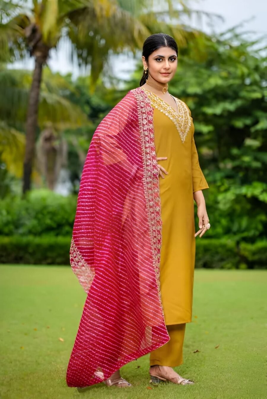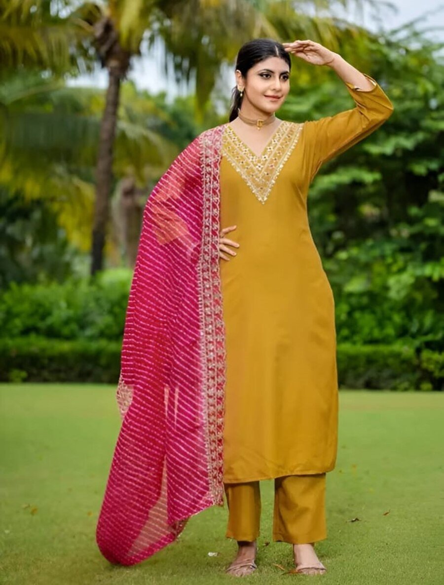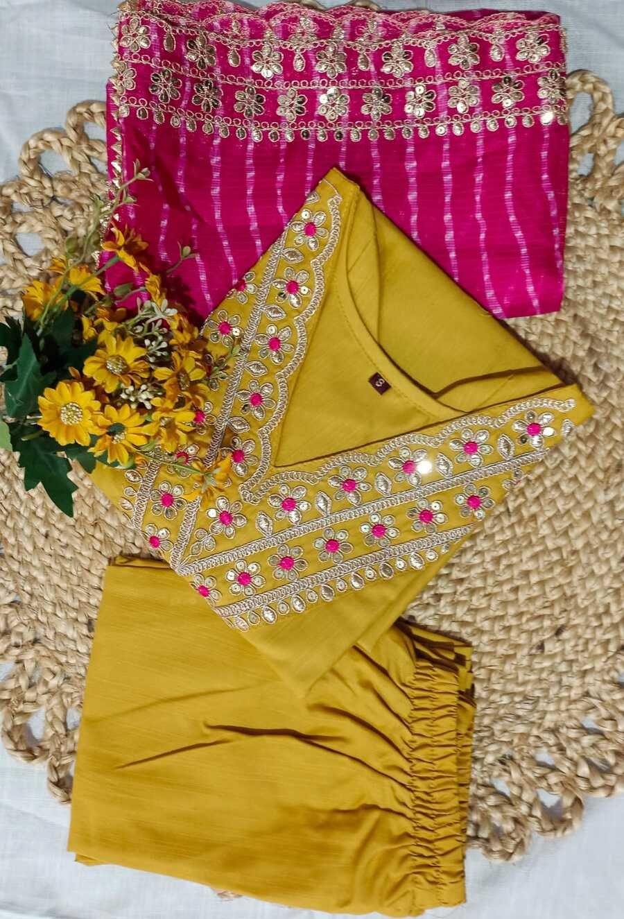 FANCY SLUB COTTON SEQUENCE EMBROIDERY WORK TOP BOTTOM WITH DUPATTA YELLOW