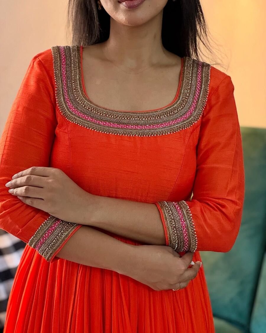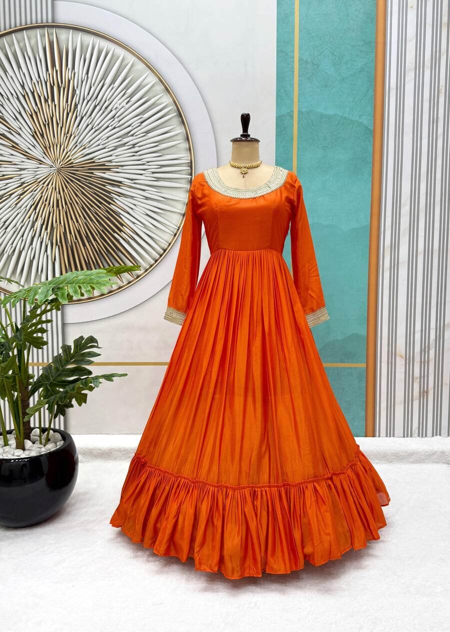 FABRIC & WORK : SOFT CHINON SILK WITH FRILL WORK
