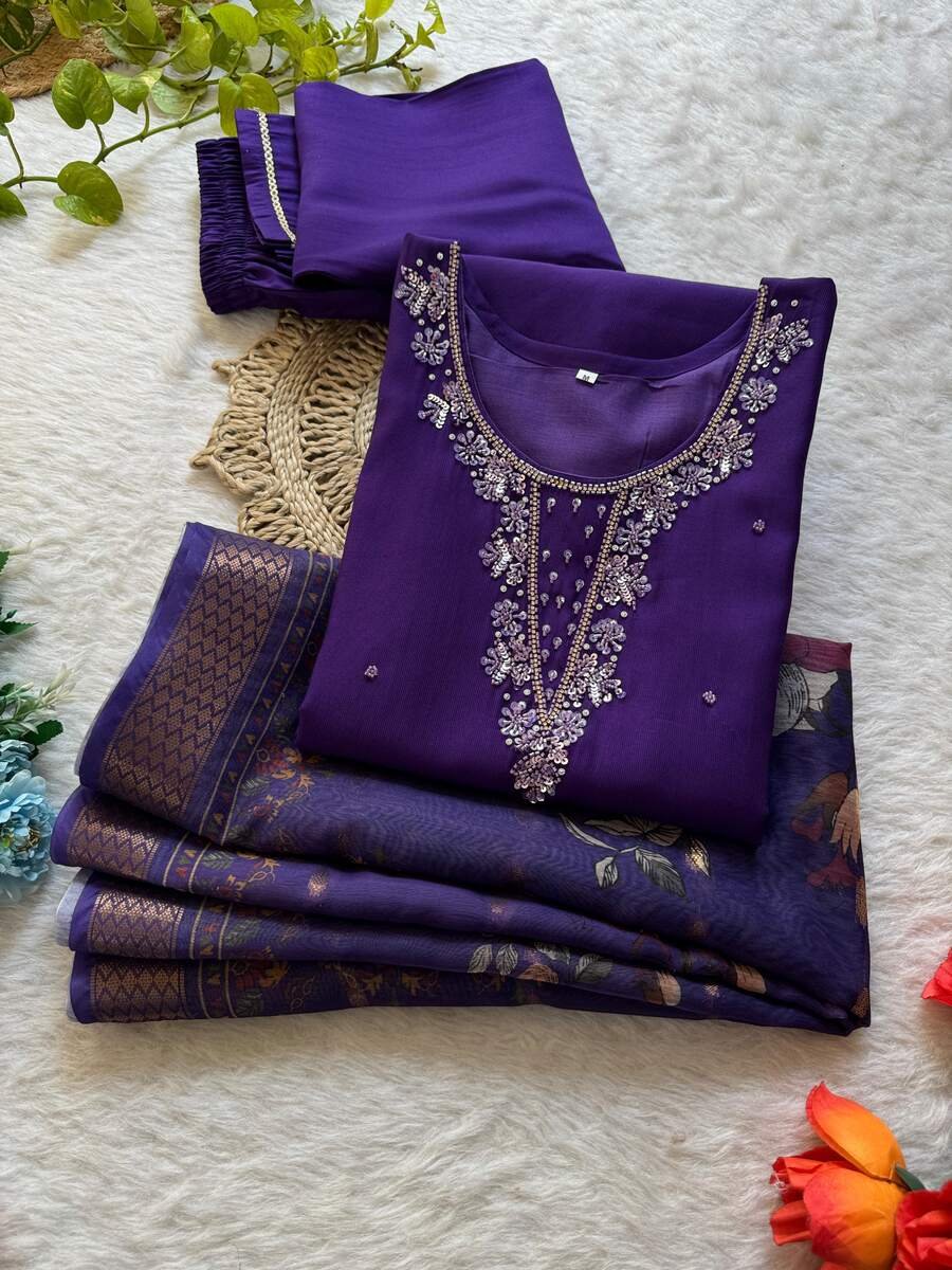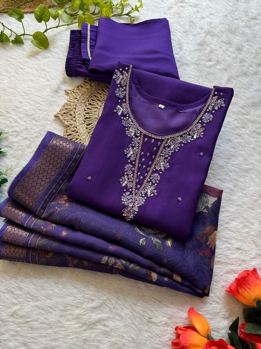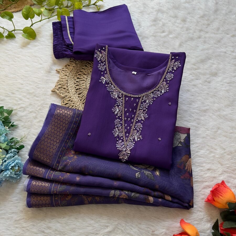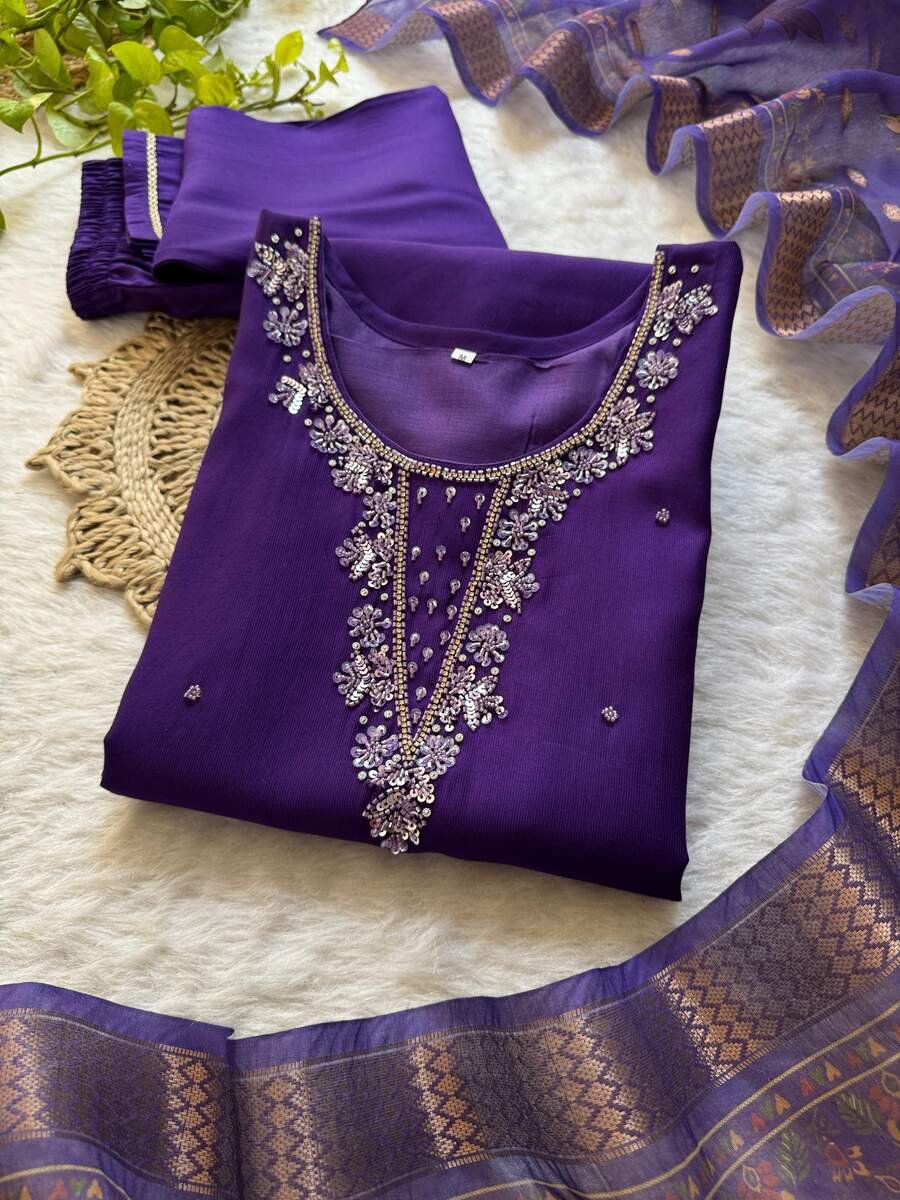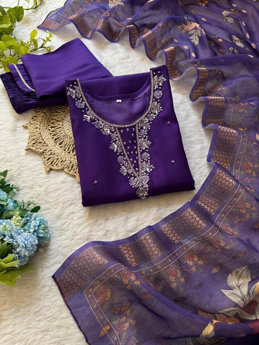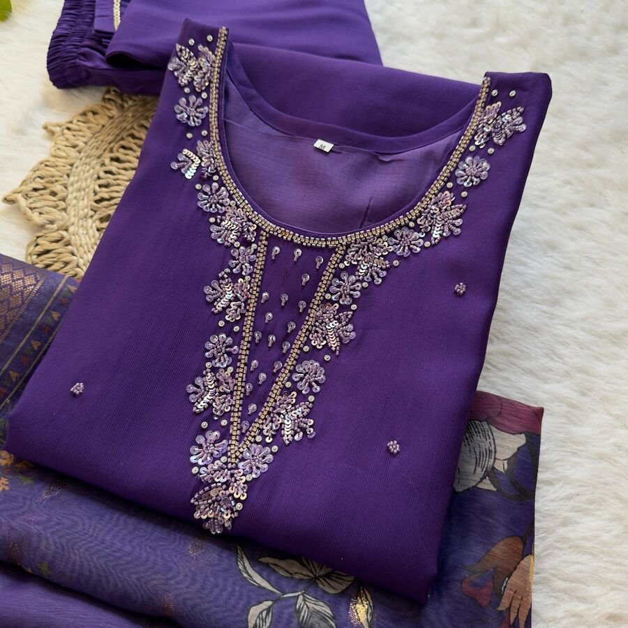TOP FABRIC :- VATICAN SOFT FABRIC WITH HANDWORK SEQUENCE THREAD WORK NECK , SLEEVE 3/4 WITH FANCY LACE
