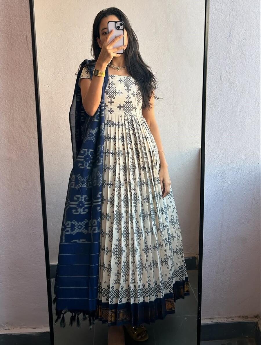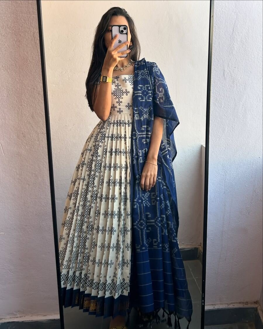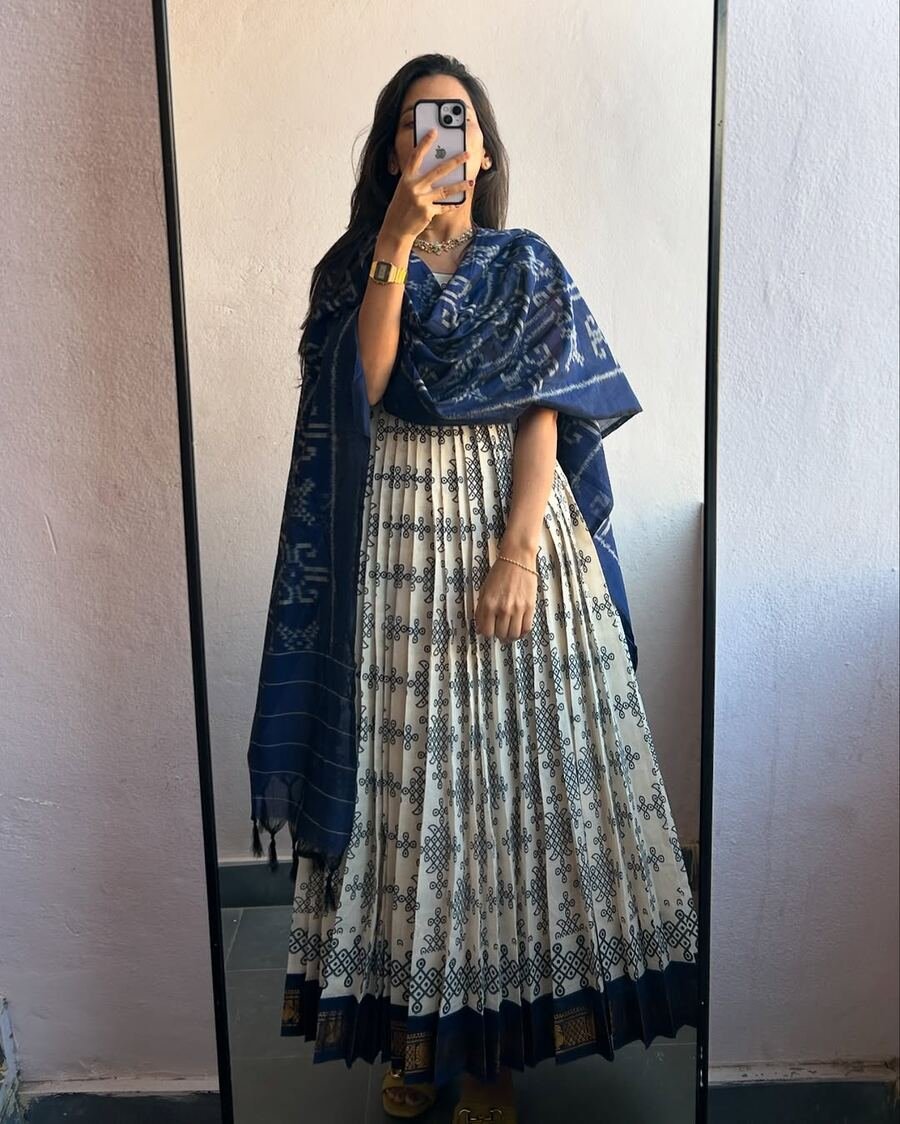 DUPATTA FABRIC : HAND-WOVEN DOUBLE IKKAT MERCERIZED COTTON DUPATTA