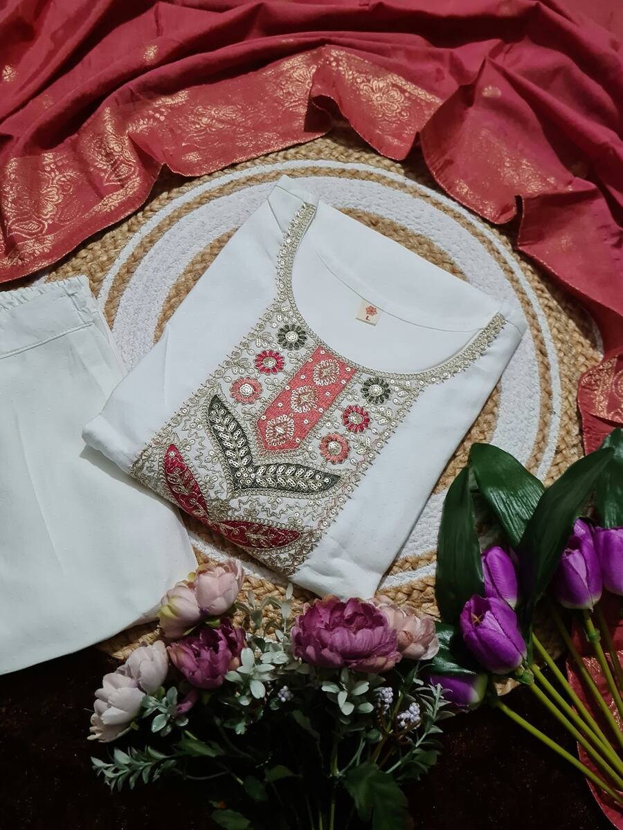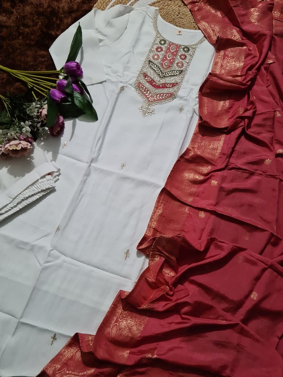 FANCY VISCOSE BLEND SEQUENCE CODING EMBROIDERY WORK TOP BOTTOM WITH DUPATTA RANI