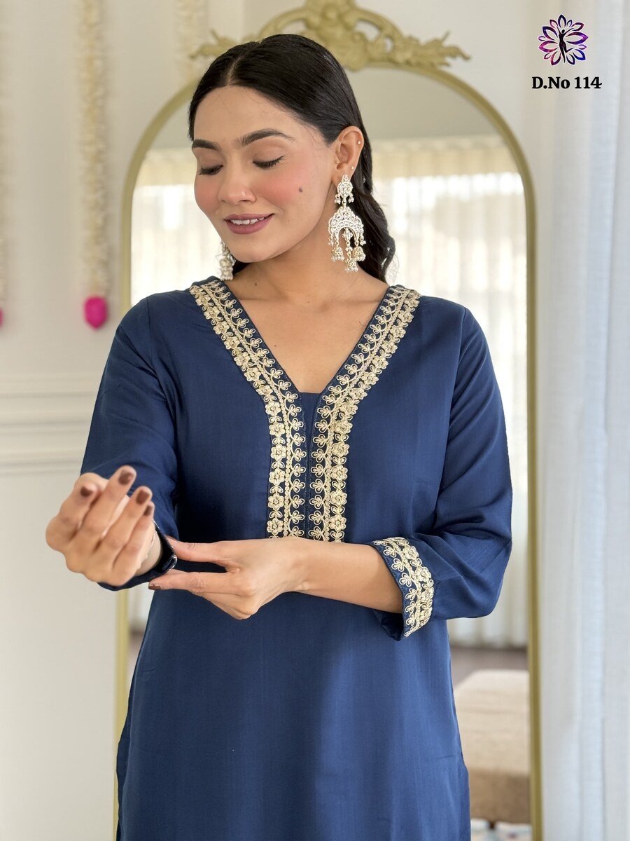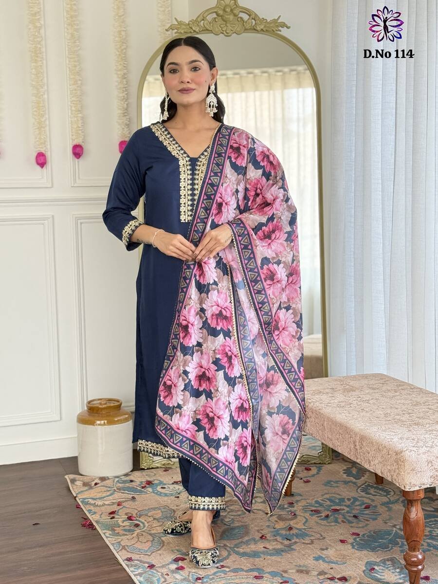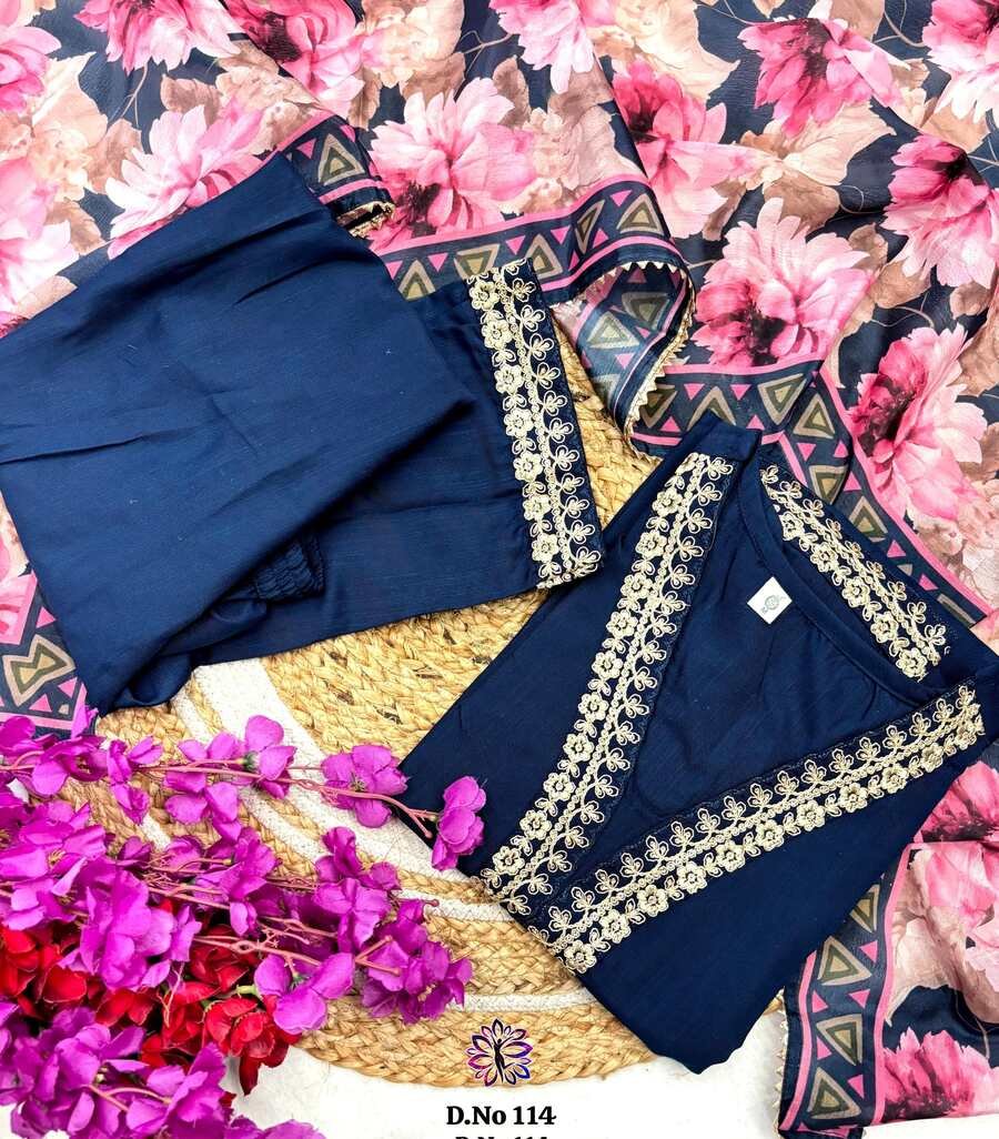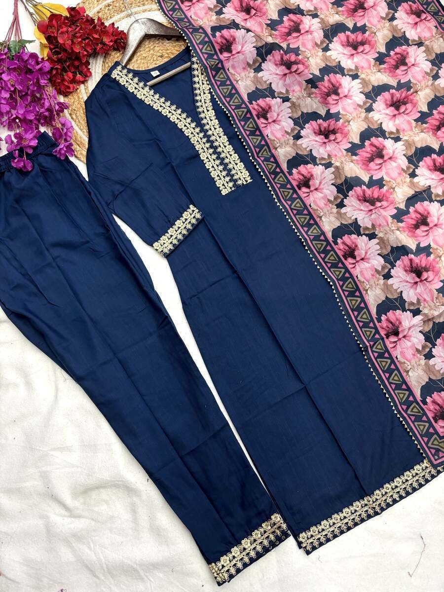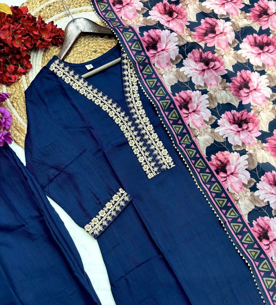 FANCY VISCOSE SLUB EMBROIDERY CODING WORK TOP BOTTOM WITH DUPATTA NAVY BLUE