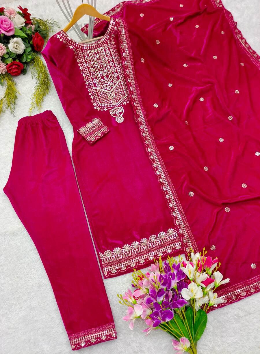 TOP FABRIC : PURE 9 THOUSAND VISCOSE VELVET WITH HEAVY EMBROIDERY 5MM SEQUENCE WORK WITH SLEEVE