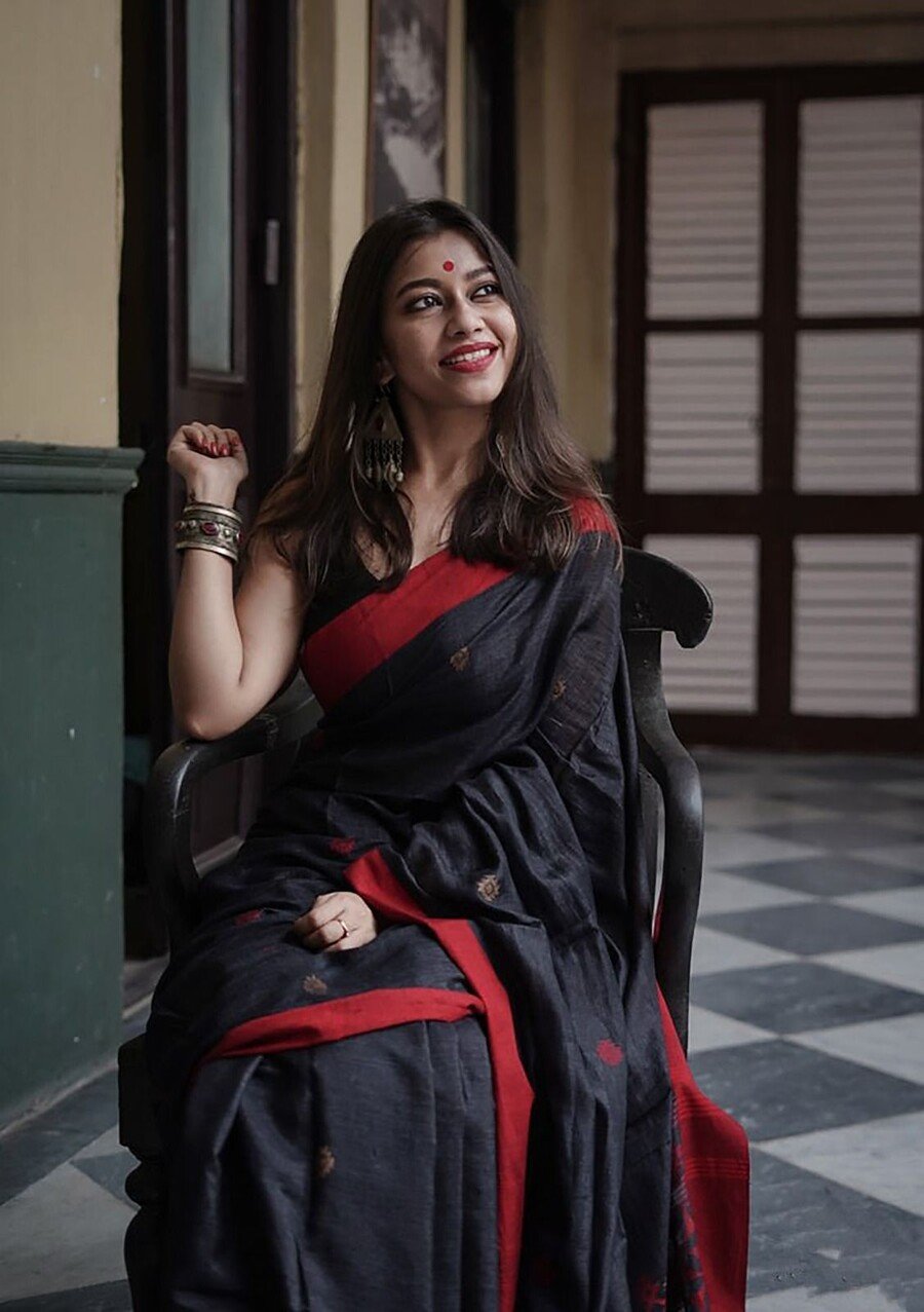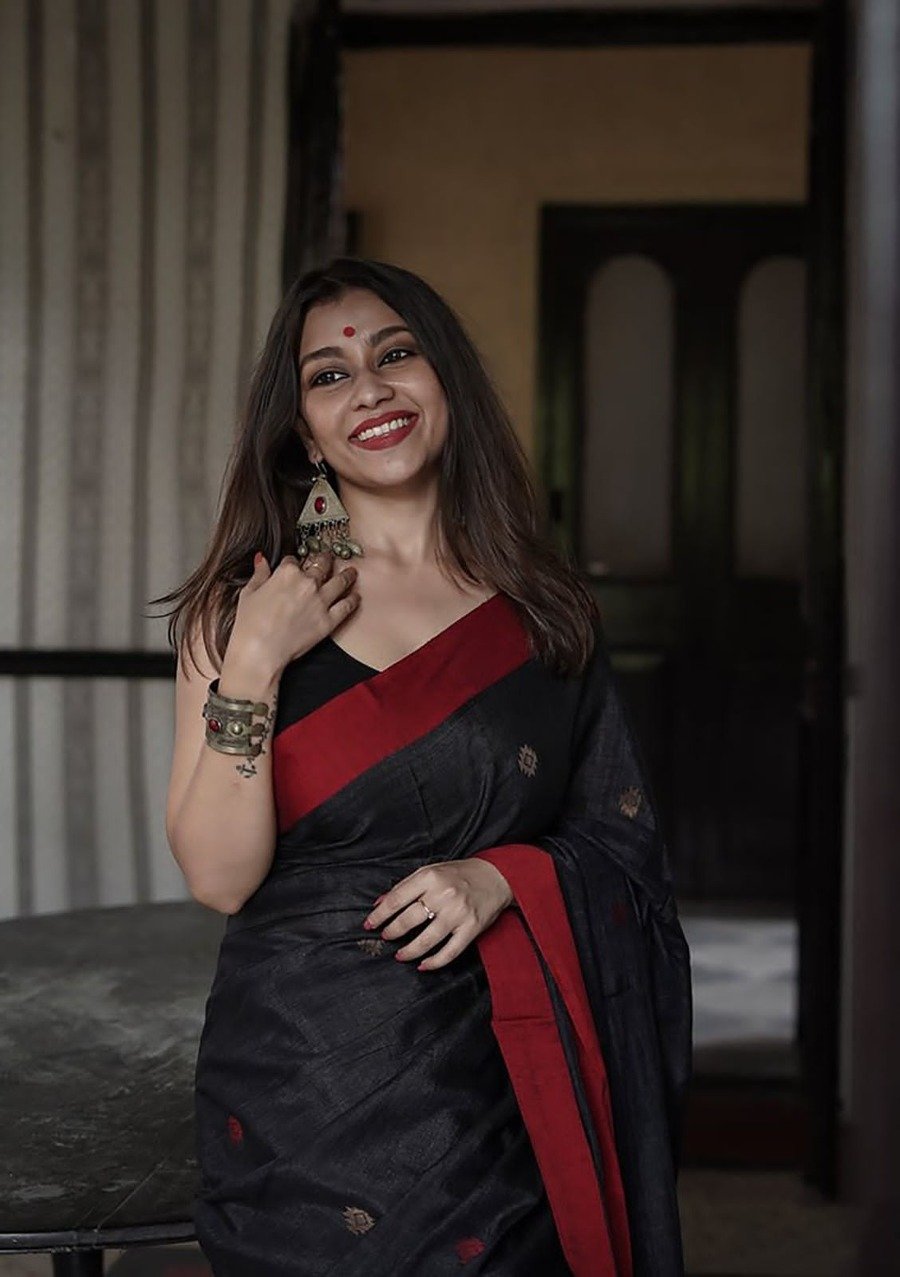 FASHINOABLE LILAN CLAB WEAVING WORK SAREE WITH UNSTITCHED BLOUSE BLACK