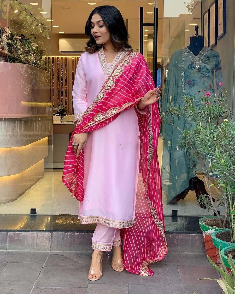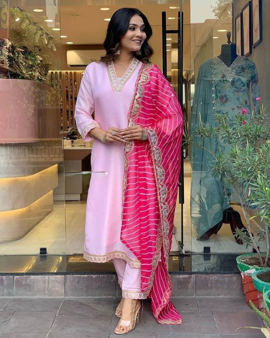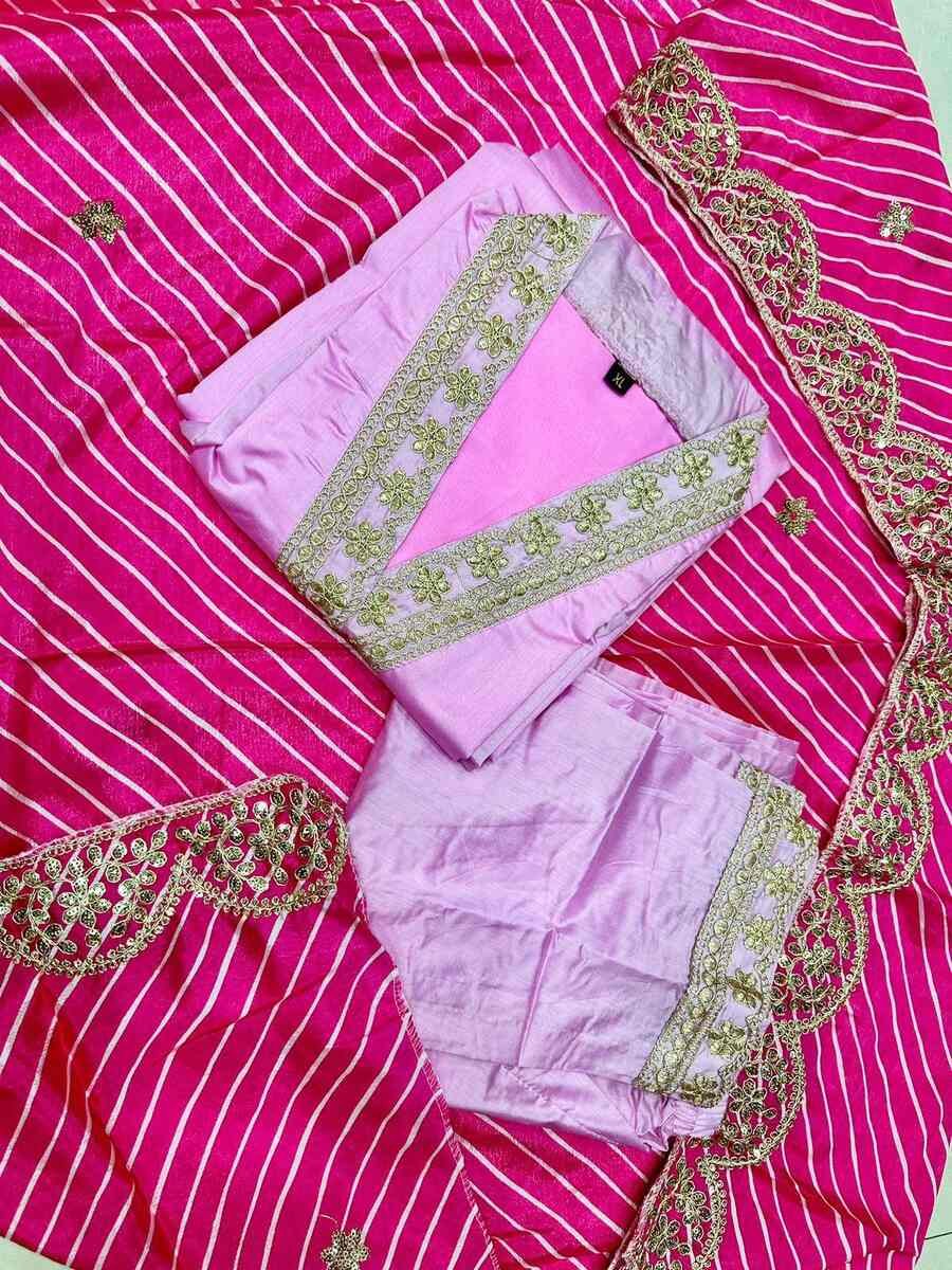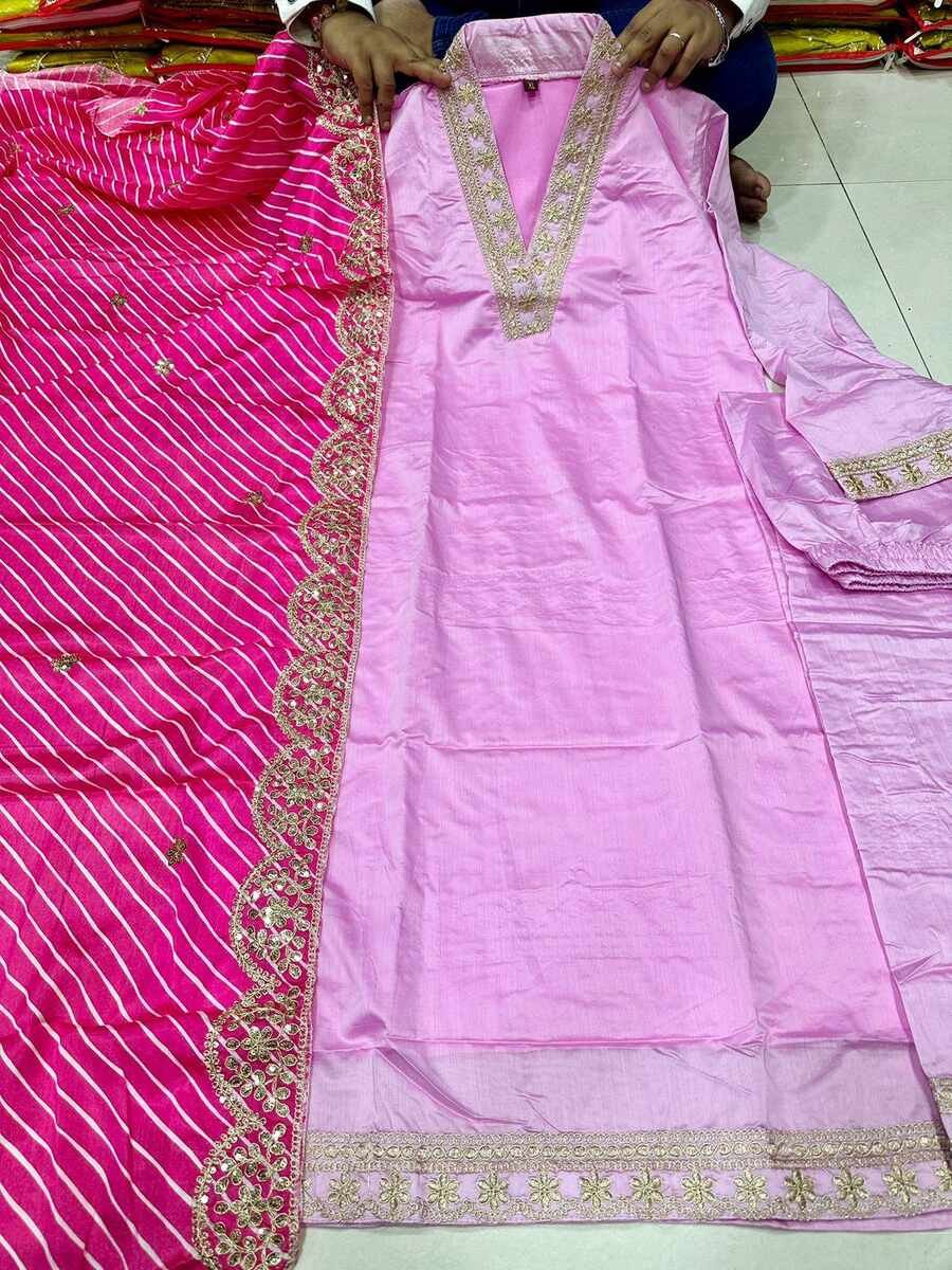 FASHIONABLE BANANA SILK EMBROIDERY WORK TOP BOTTOM WITH DUPATTA PINK