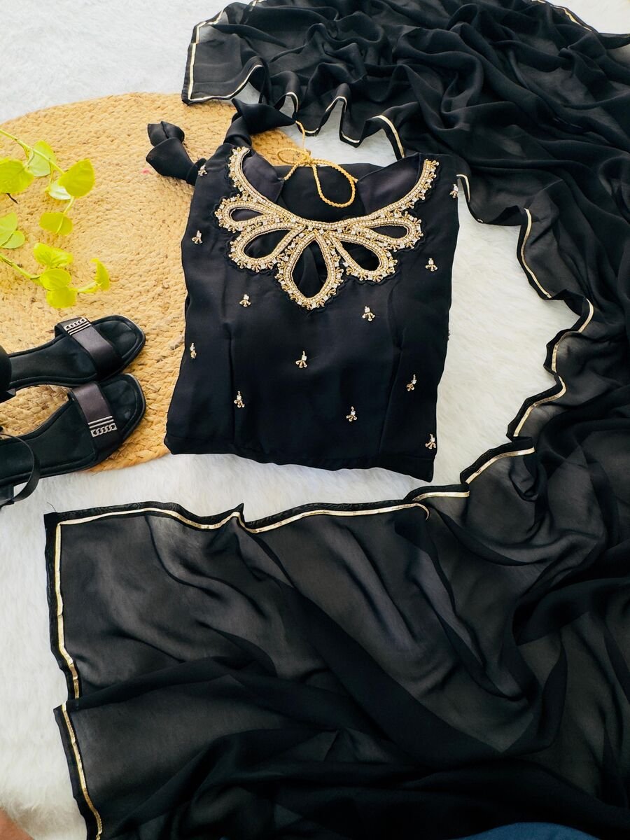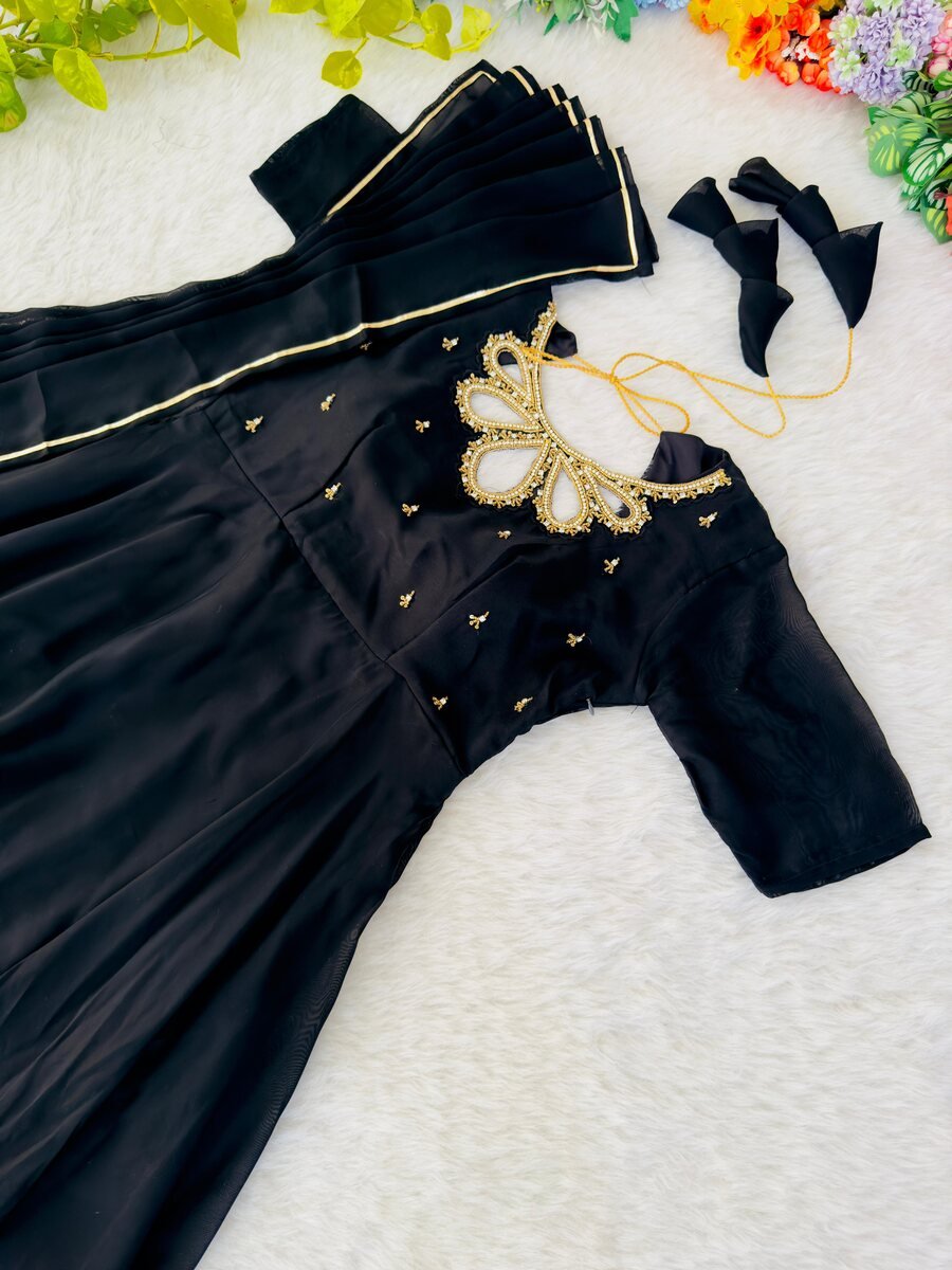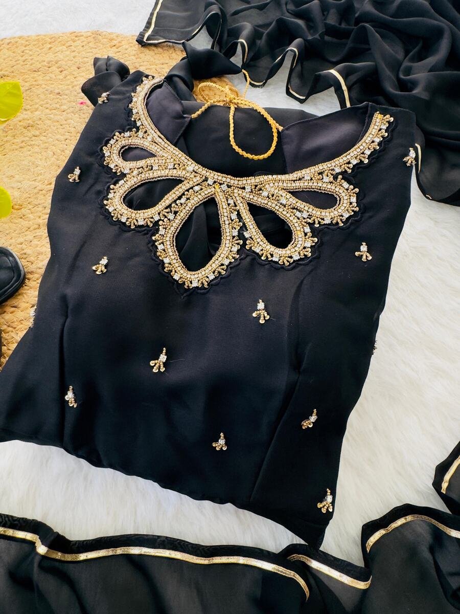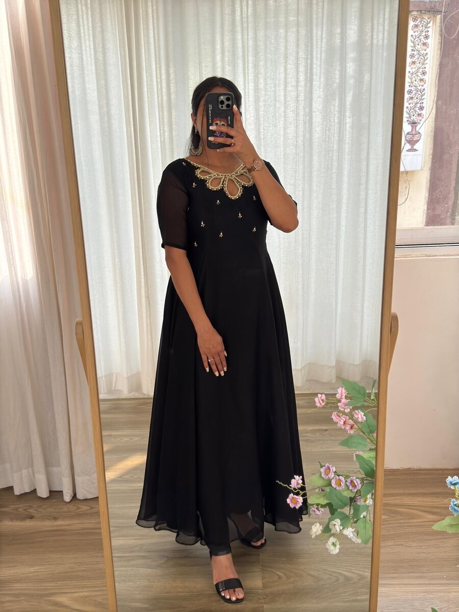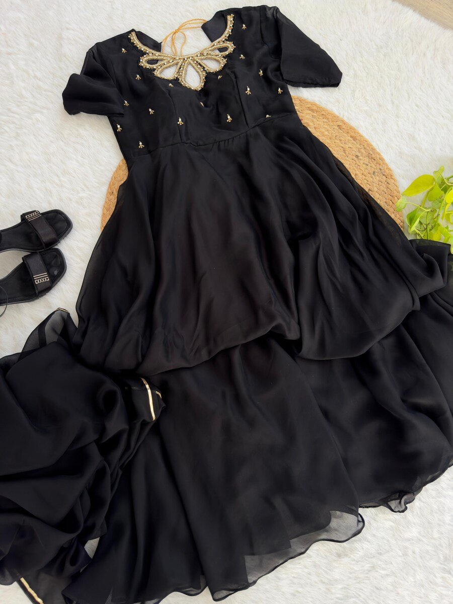GOWN FABRIC :- BLACK RANGOLI GEORGETTE HEAVY QUALITY 2 TONE