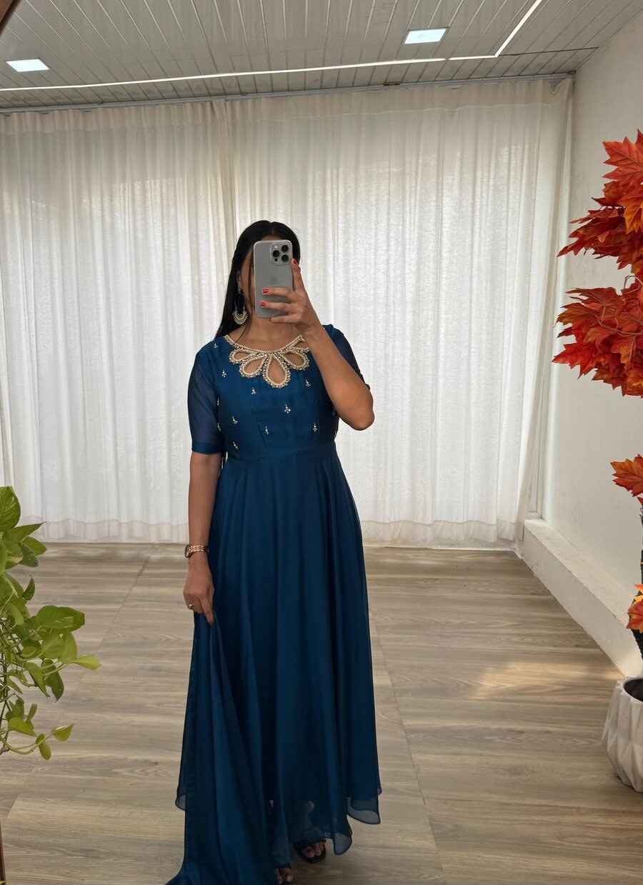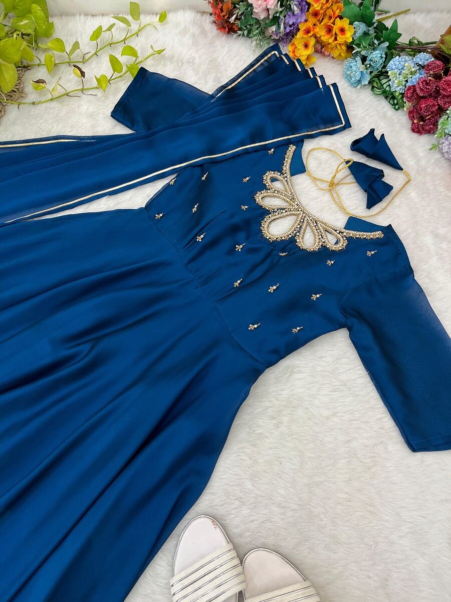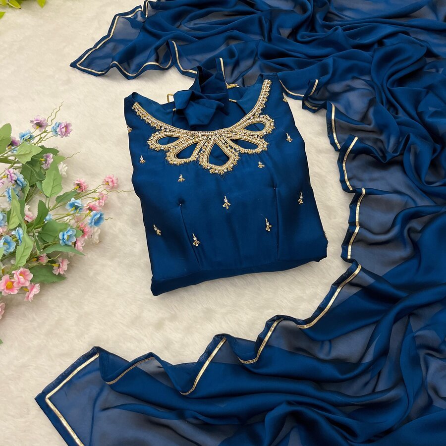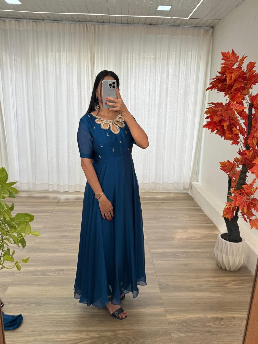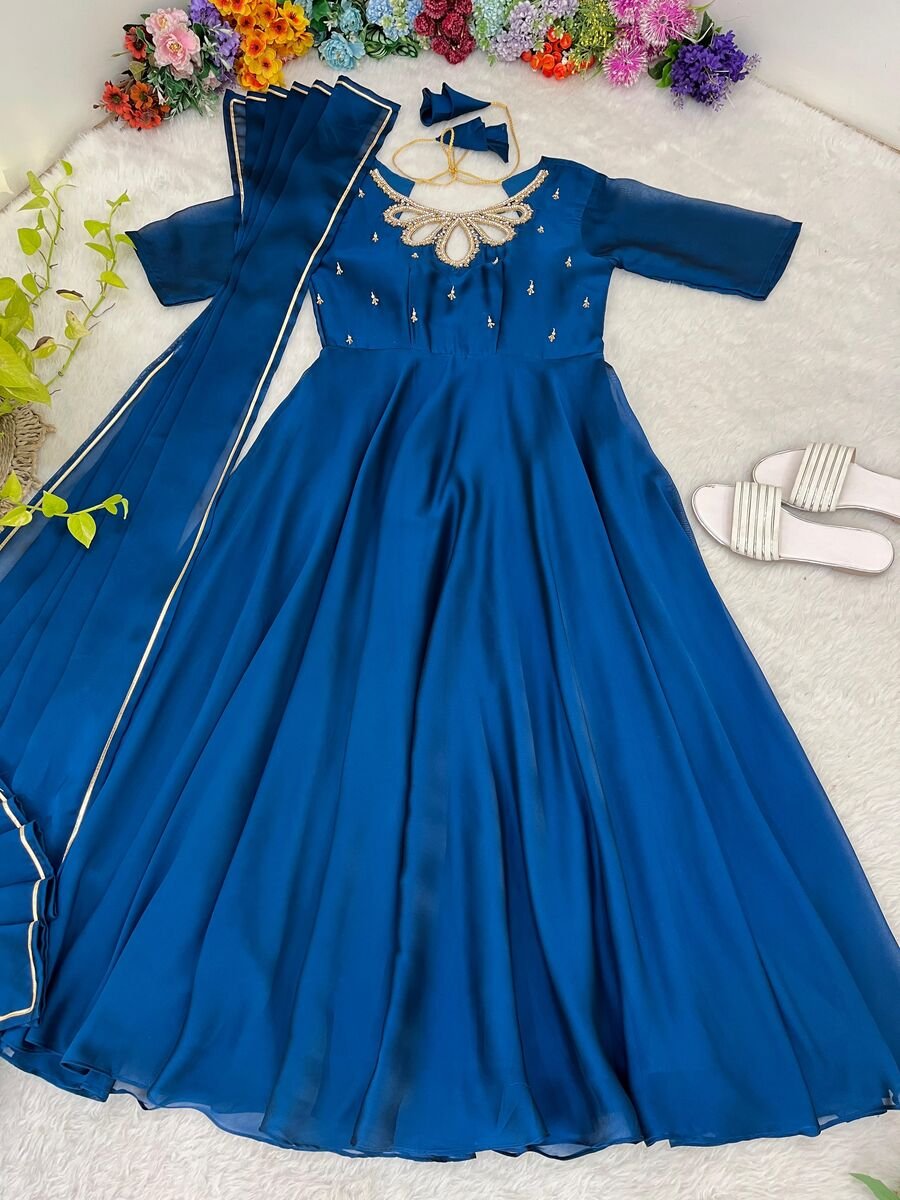 GOWN FABRIC :- BLACK RANGOLI GEORGETTE HEAVY QUALITY 2 TONE