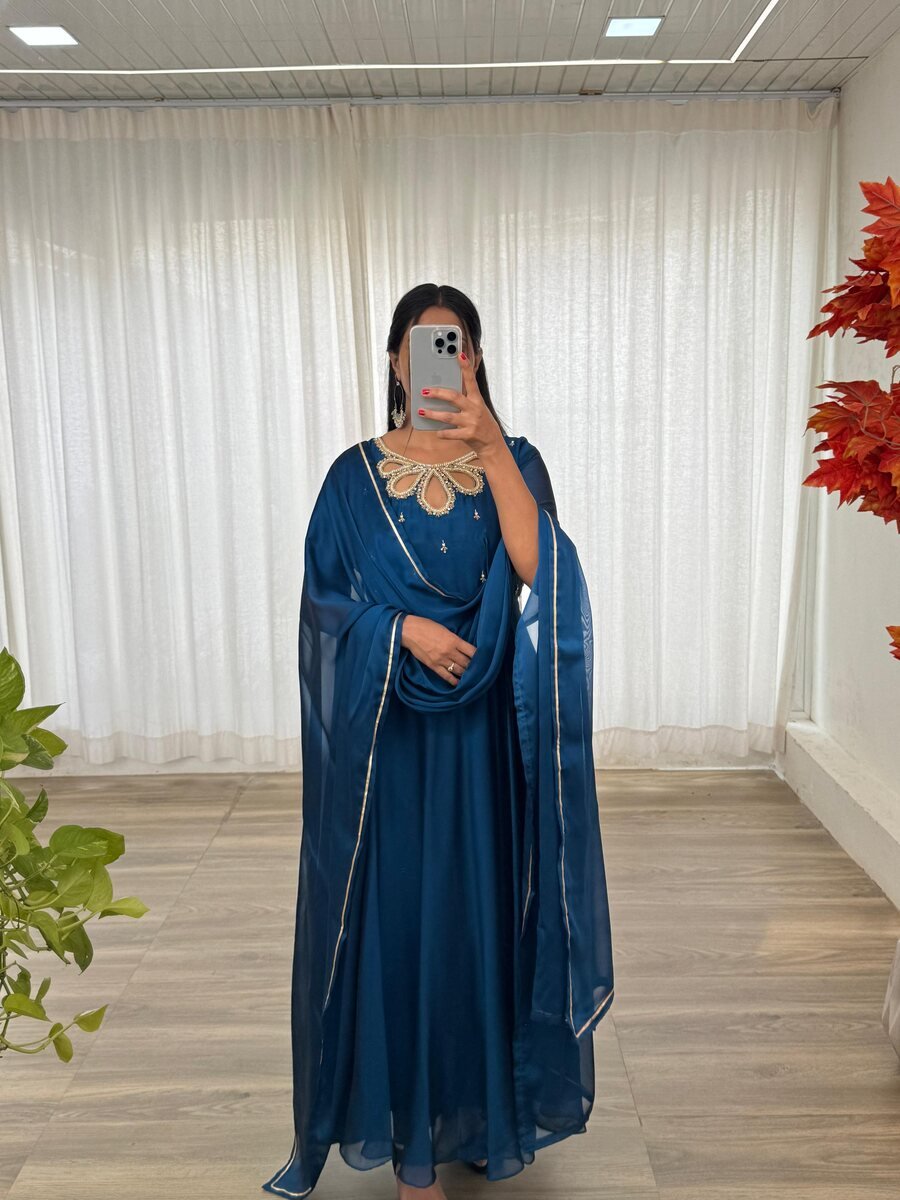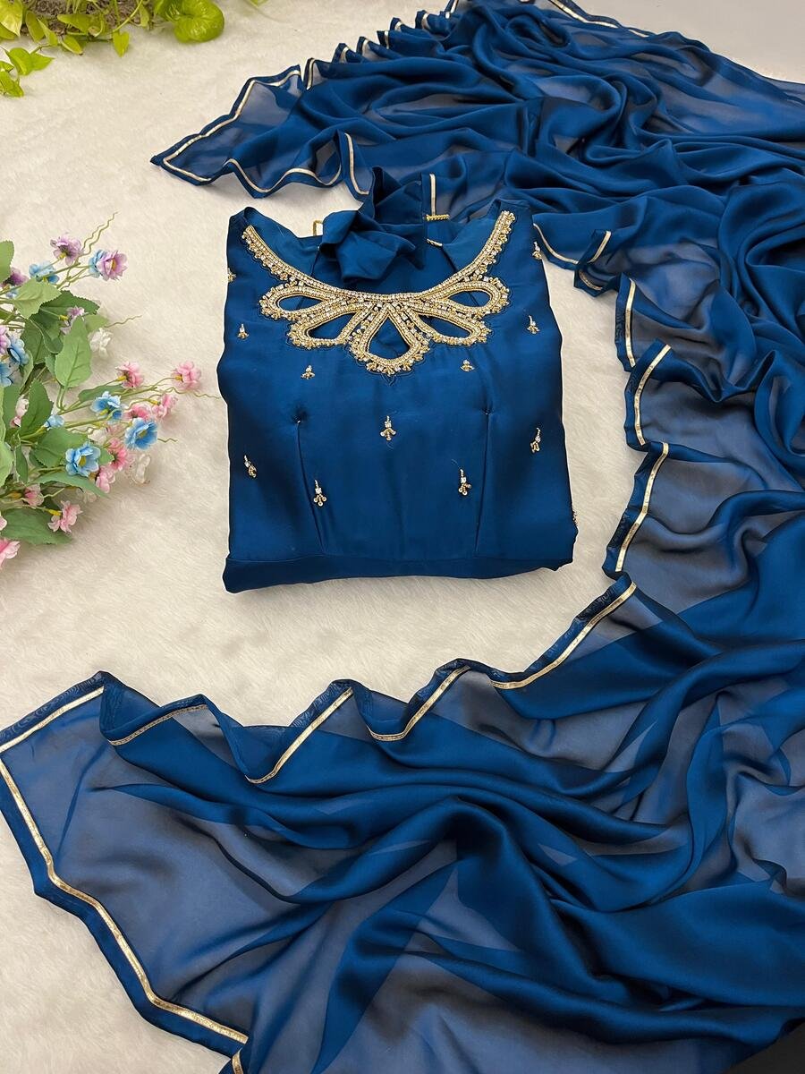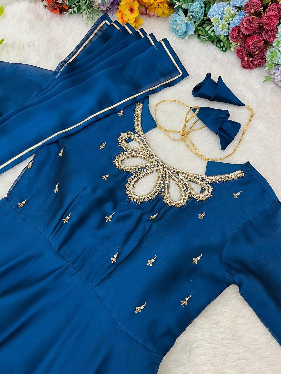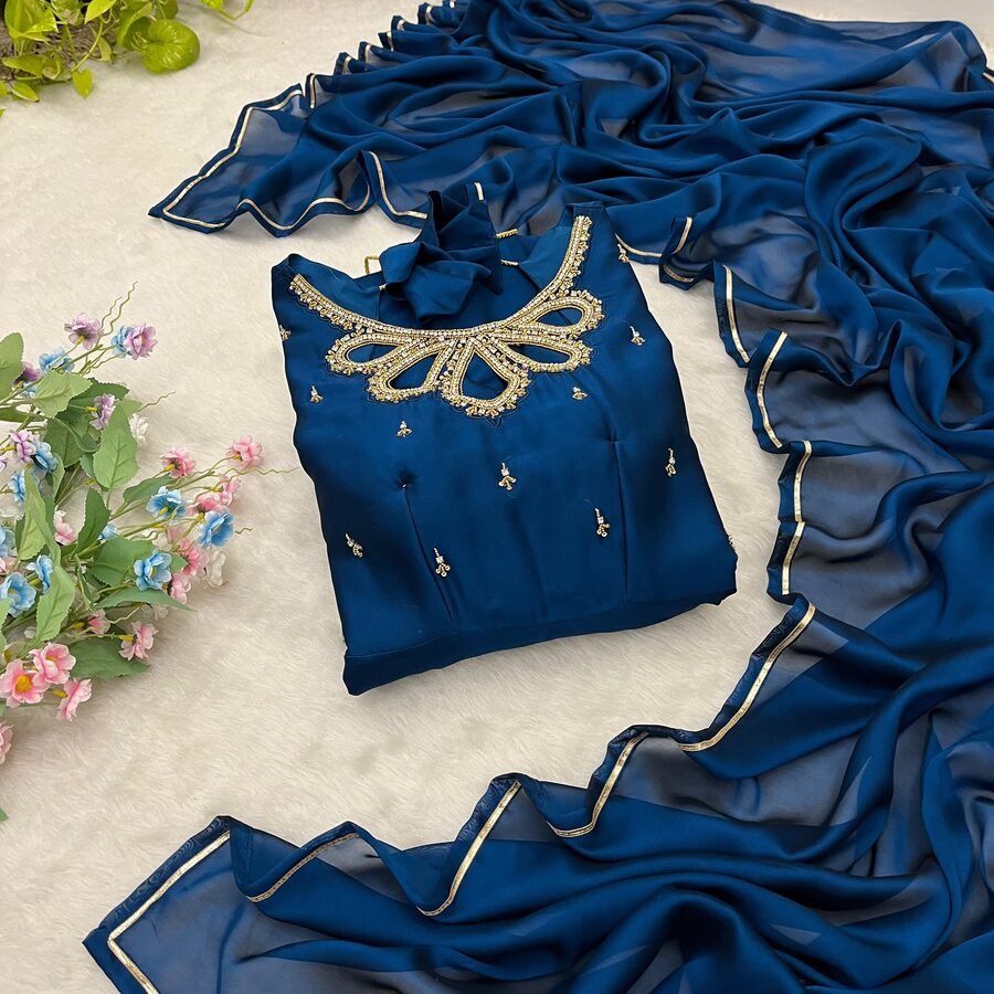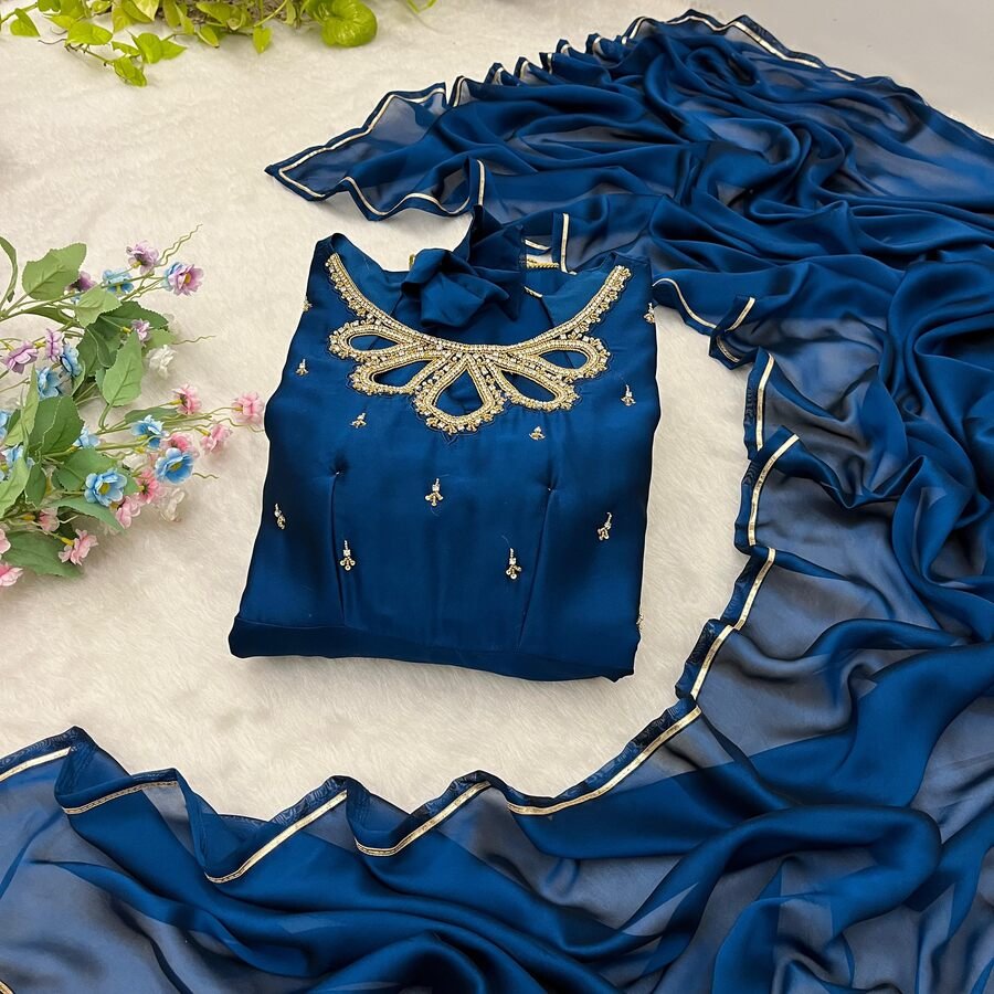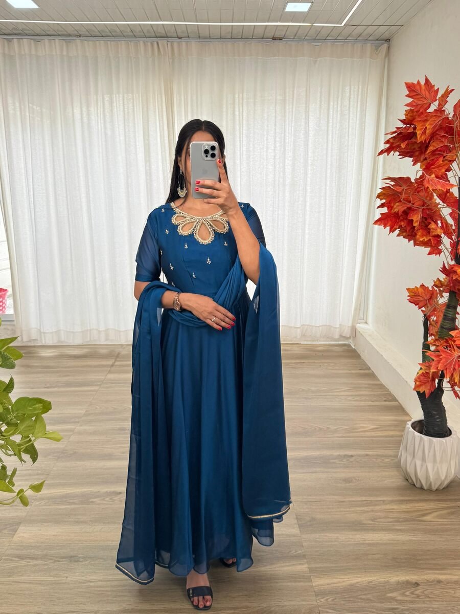 GOWN FABRIC :- BLACK RANGOLI GEORGETTE HEAVY QUALITY 2 TONE