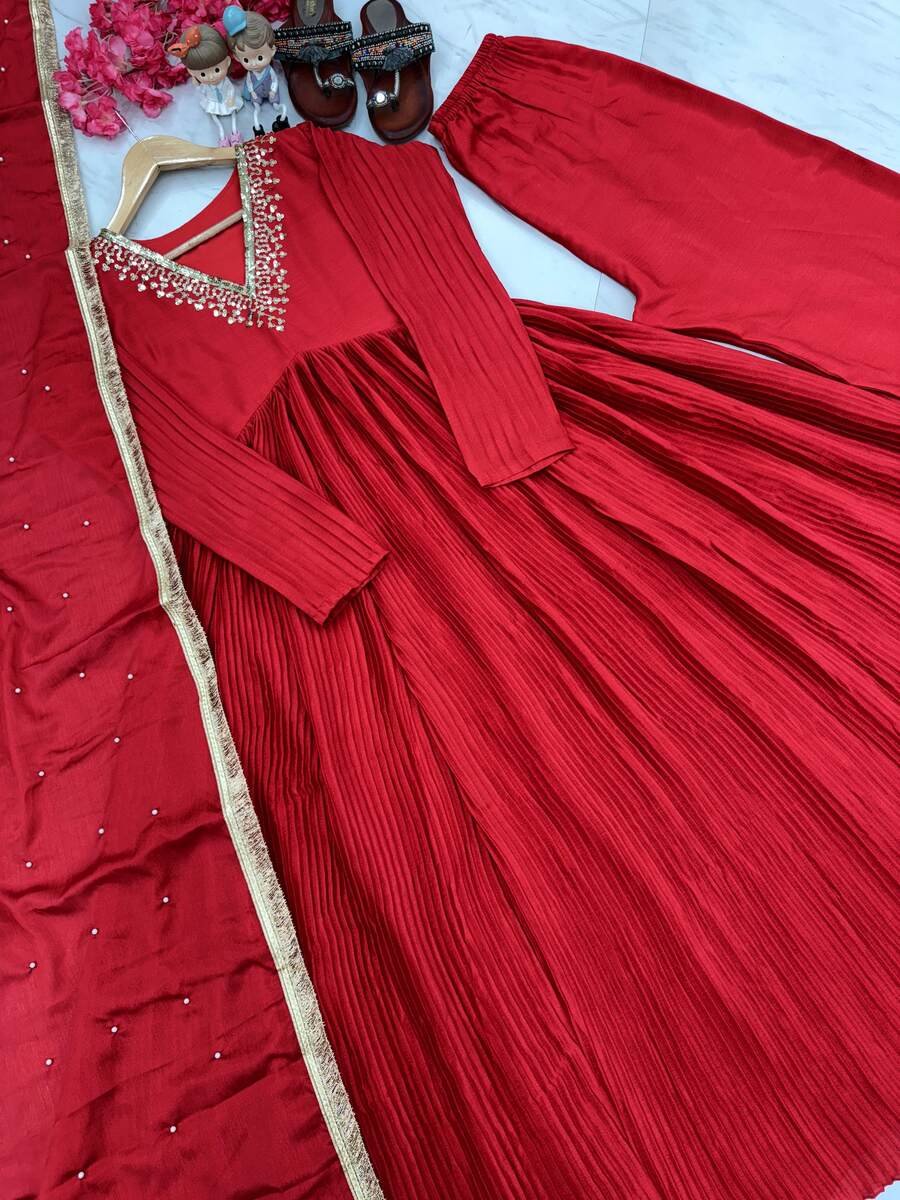 ALIA CUT GOWN FABRIC :- PURE CHINON SILK & CRUSH WITH EMBROIDERY WORK WITH FANCY FULL SLEEVE