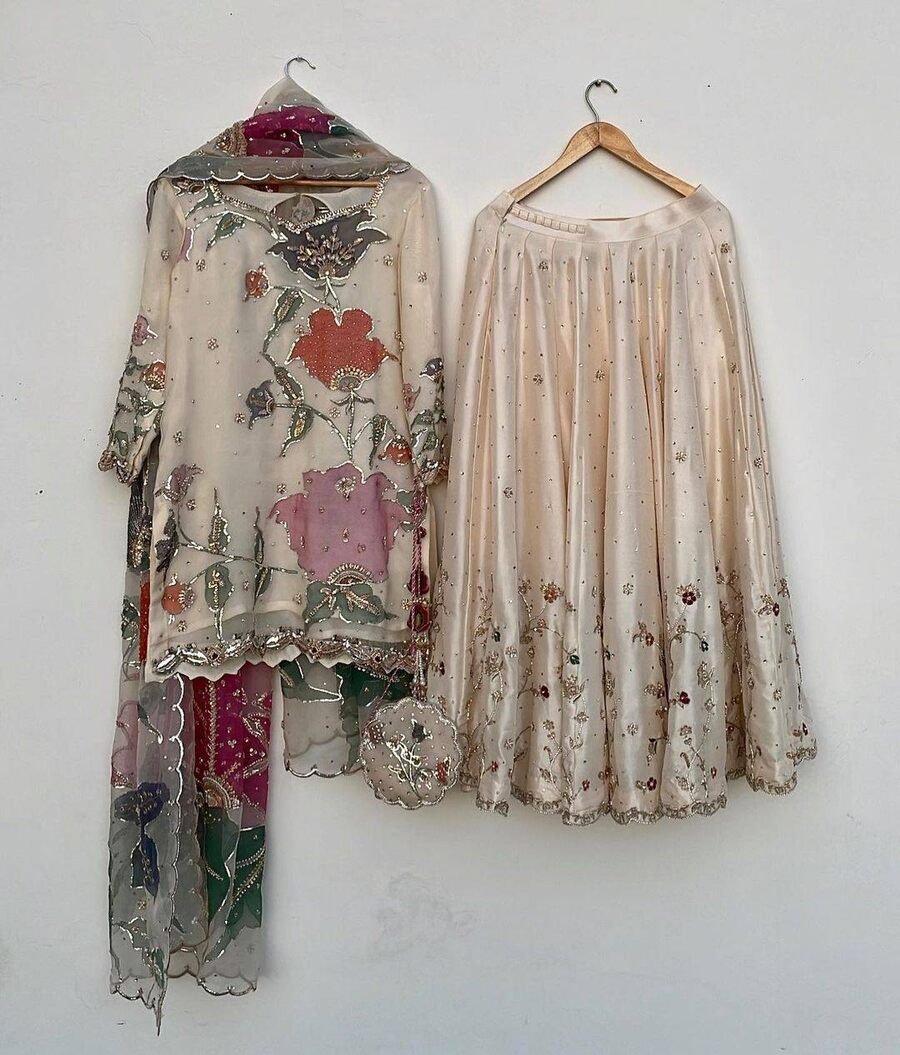 LEHENGA : CHINON WITH EMBROIDERY WORK