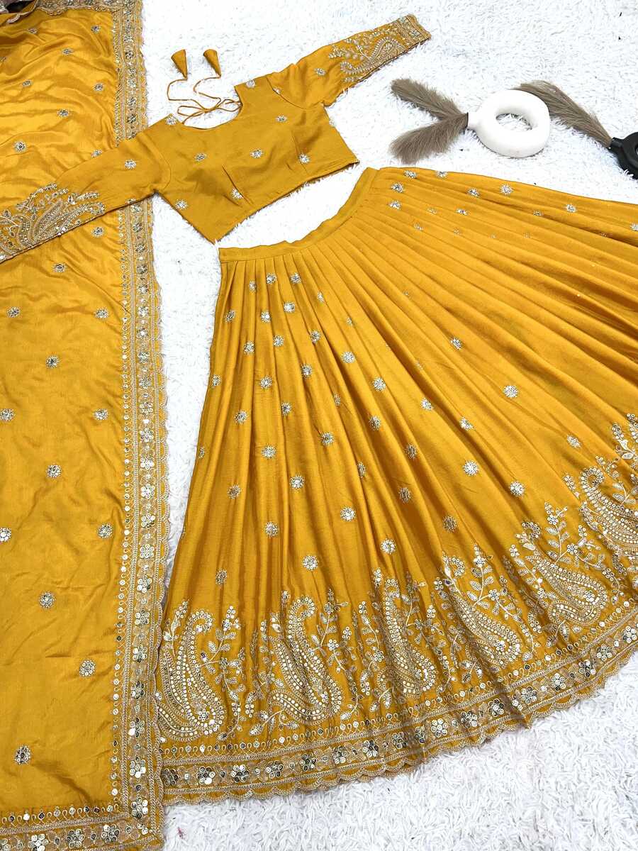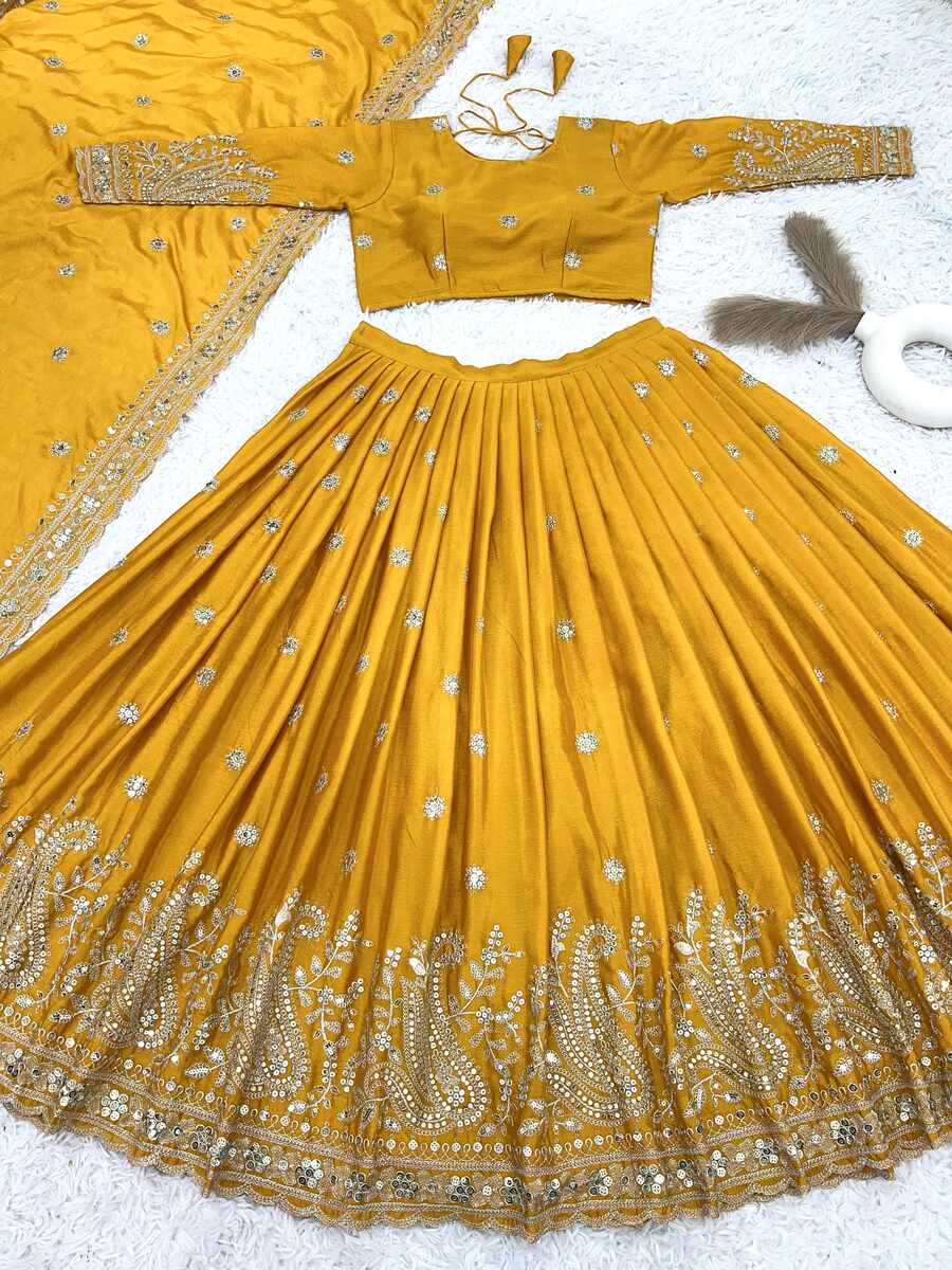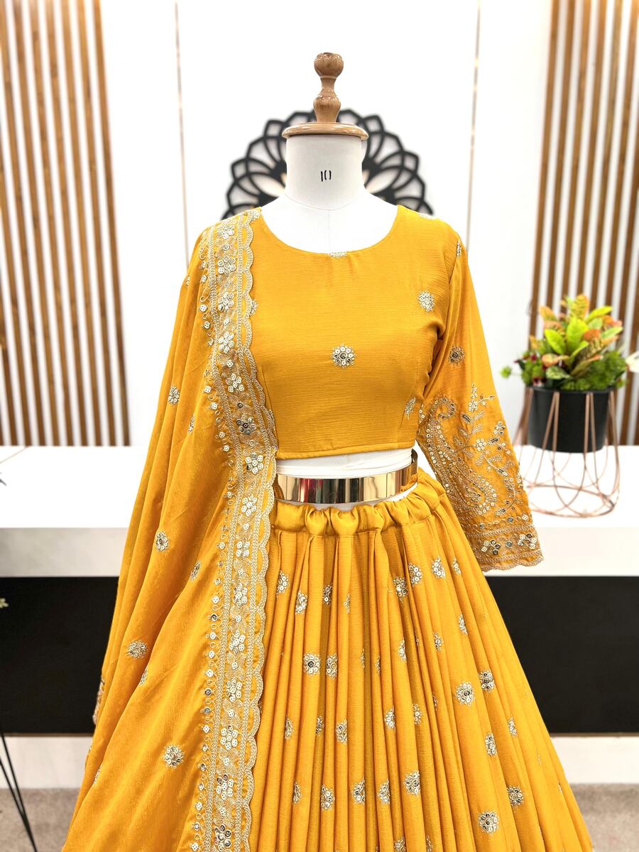LEHENGA FABRIC : HEAVY CHINON SILK WITH HEAVY EMBROIDERY SEQUENCE WORK WITH CAN-CAN PATTALEHENGA FLAIR : 3 METERLEHENGA INNER : MICRO COTTONLEHENGA LENGTH : 42-43 INCHCHOLI FABRIC :- HEAVY CHINON SILK WITH HEAVY EMBROIDERY SEQUENCE WORK WITH SLEEVES AND ATTACHED CUPS (FULL STITCHED XL SIZE XXL MARGIN )DUPATTA FABRIC : HEAVY CHINON SILK WITH EMBROIDERY SEQUENCE WORK AND EMBROIDERY SEQUENCE LACE BORDERDUPATTA LENGTH : 2.10 METERFREE SIZE SEMI-STITCHED LEHENGA WITH FULL STITCH CHOLI WITH ATTACHED CUPS