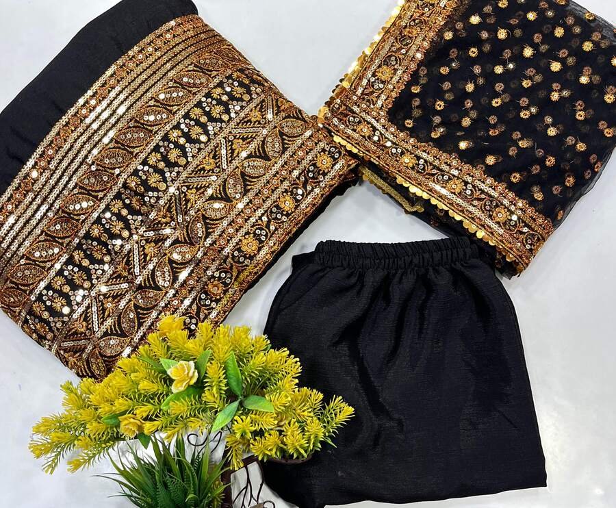 DUPATTA :- HEAVY SOFT NET WITH BEAUTIFUL SEQUENCE & ZARI EMBROIDERY WORK WITH BEAUTIFUL LACE WORK ON BORDERS
