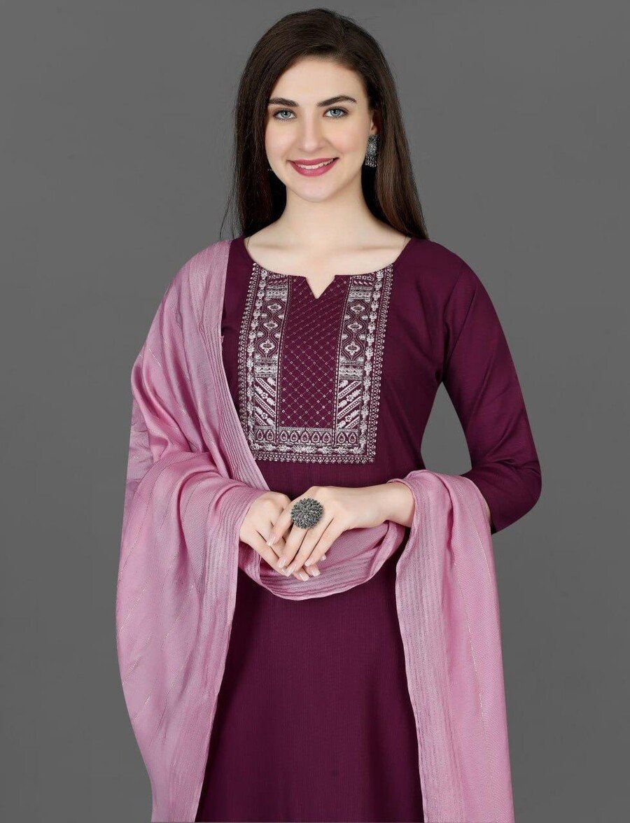 FASHIONABLE COTTON SILK EMBROIDERY WORK TOP BOTTOM WITH DUPATTA WINE