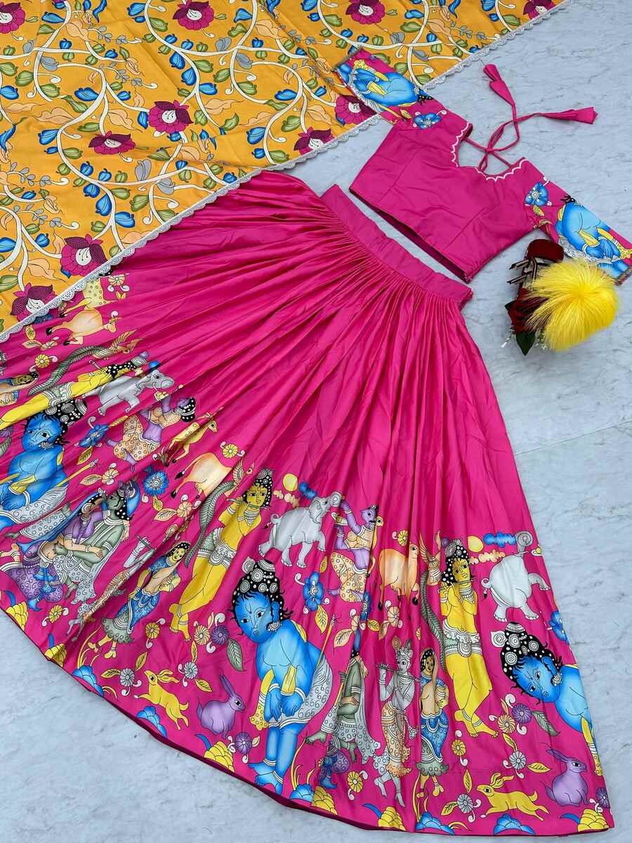 FASHIONABLE CREPE KALAMKARI PRINT WORK LEHENGA CHOLI WITH DUPATTA PINK