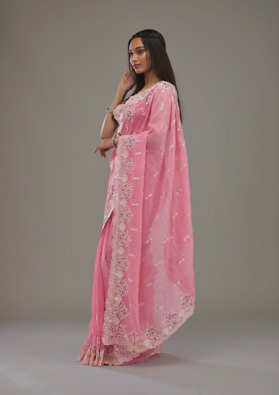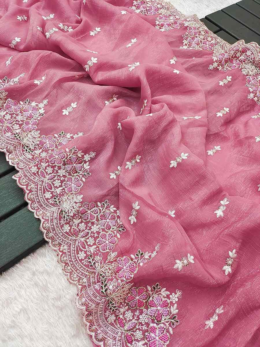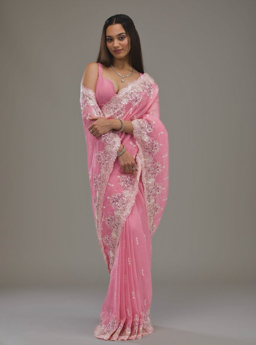 SAREE FABRIC :- CRUNCHY WITH HEAVY EMBROIDERY THREADS & SEQUENCE WORK WITH FANCY CUT WORK BORDER