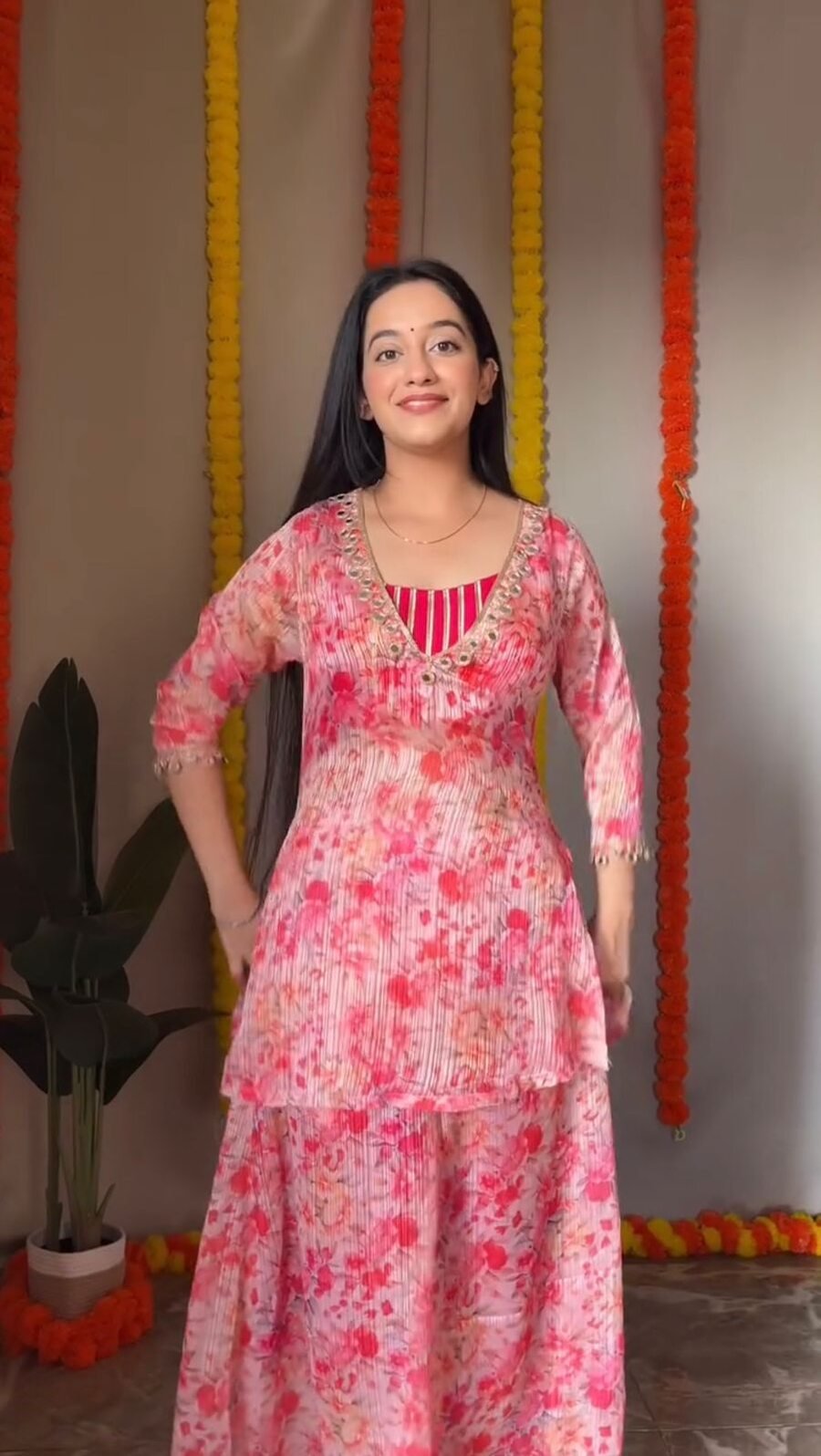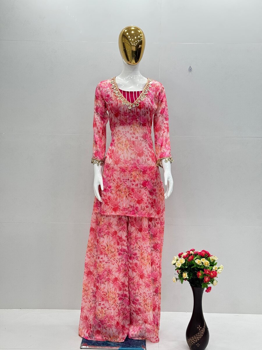 WORK :- DIGITAL PRINT WITH REAL MIRROR WORK NECK