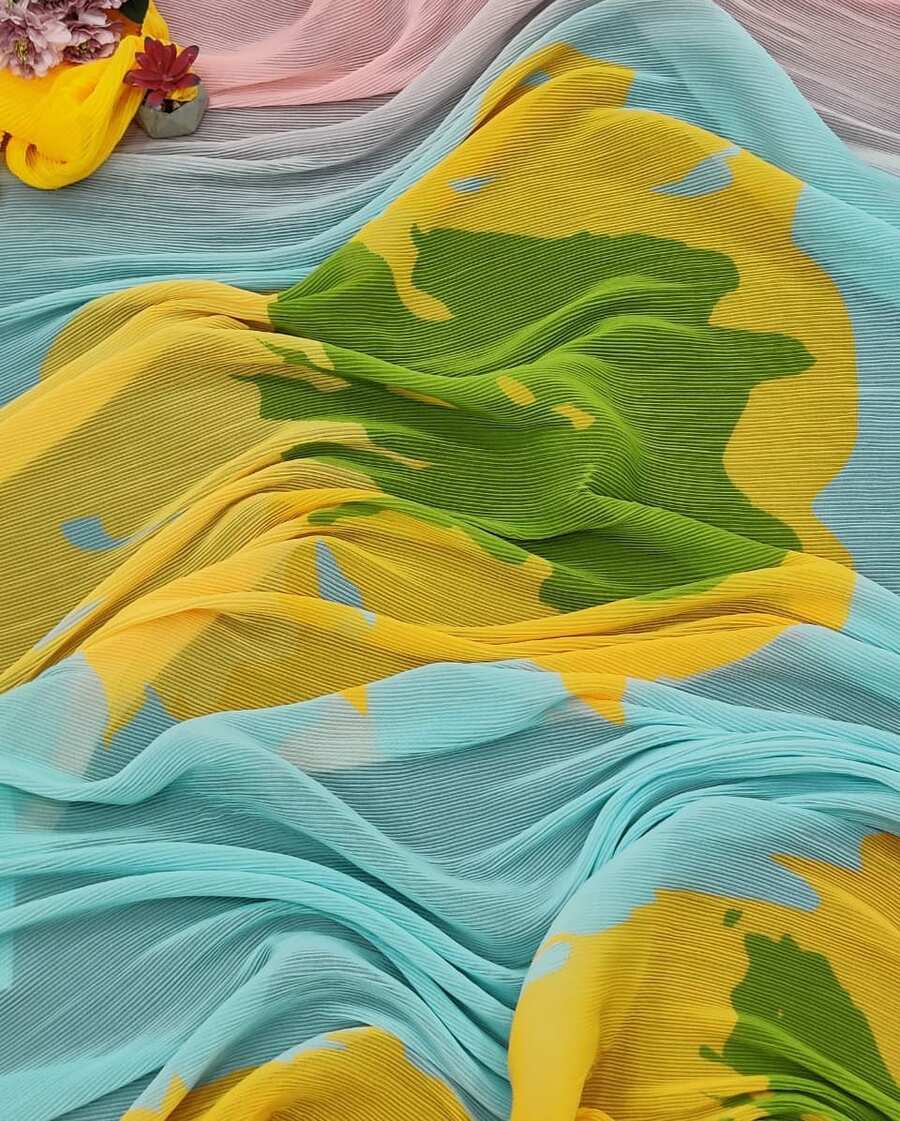 SAREE FABRIC :- CRUSHED WITH DIGITAL PRINT
