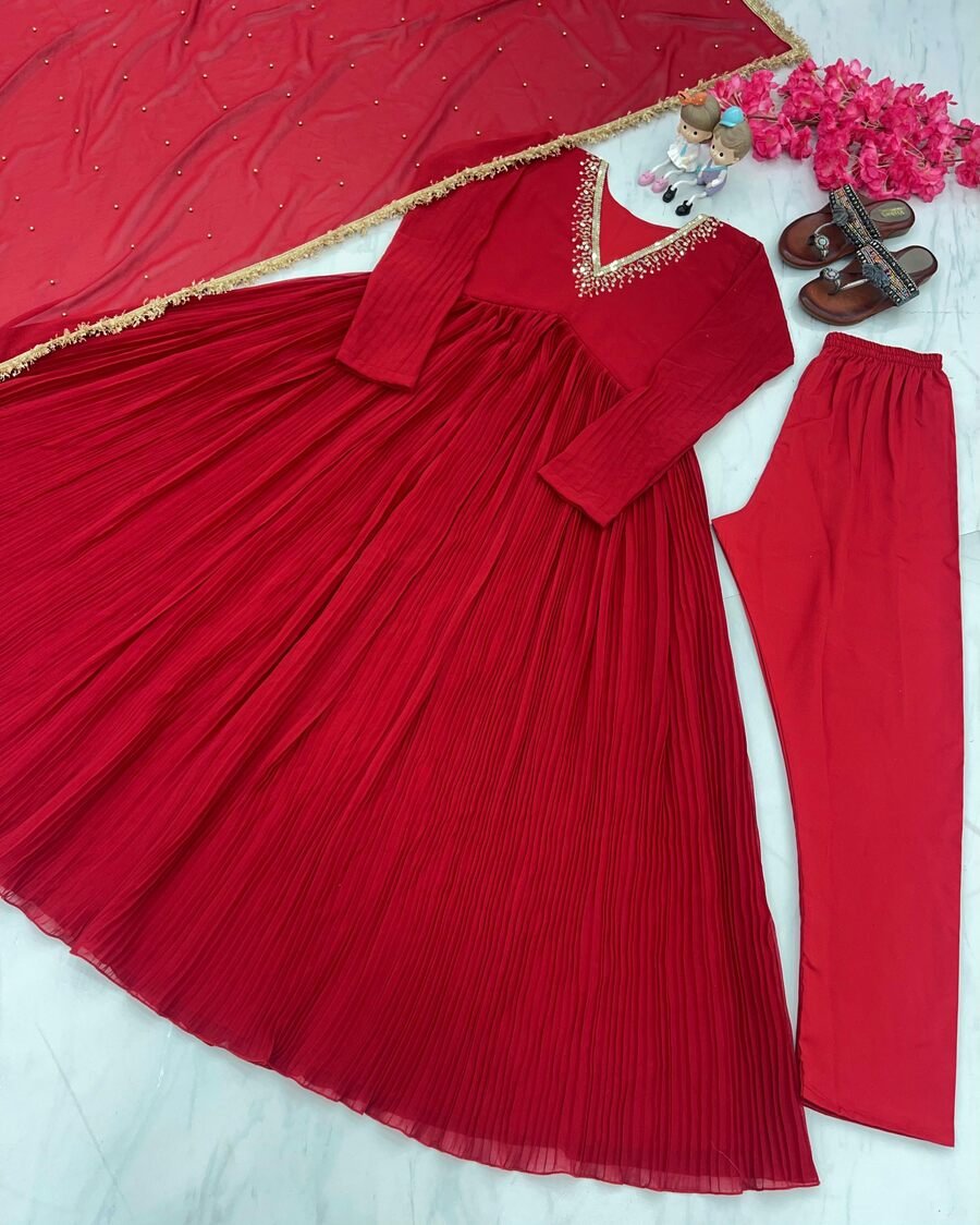 GOWN FABRIC : HEAVY FAUX GEORGETTE AND CRUSH WITH EMBROIDERY WORK WITH FANCY FULL SLEEVE
