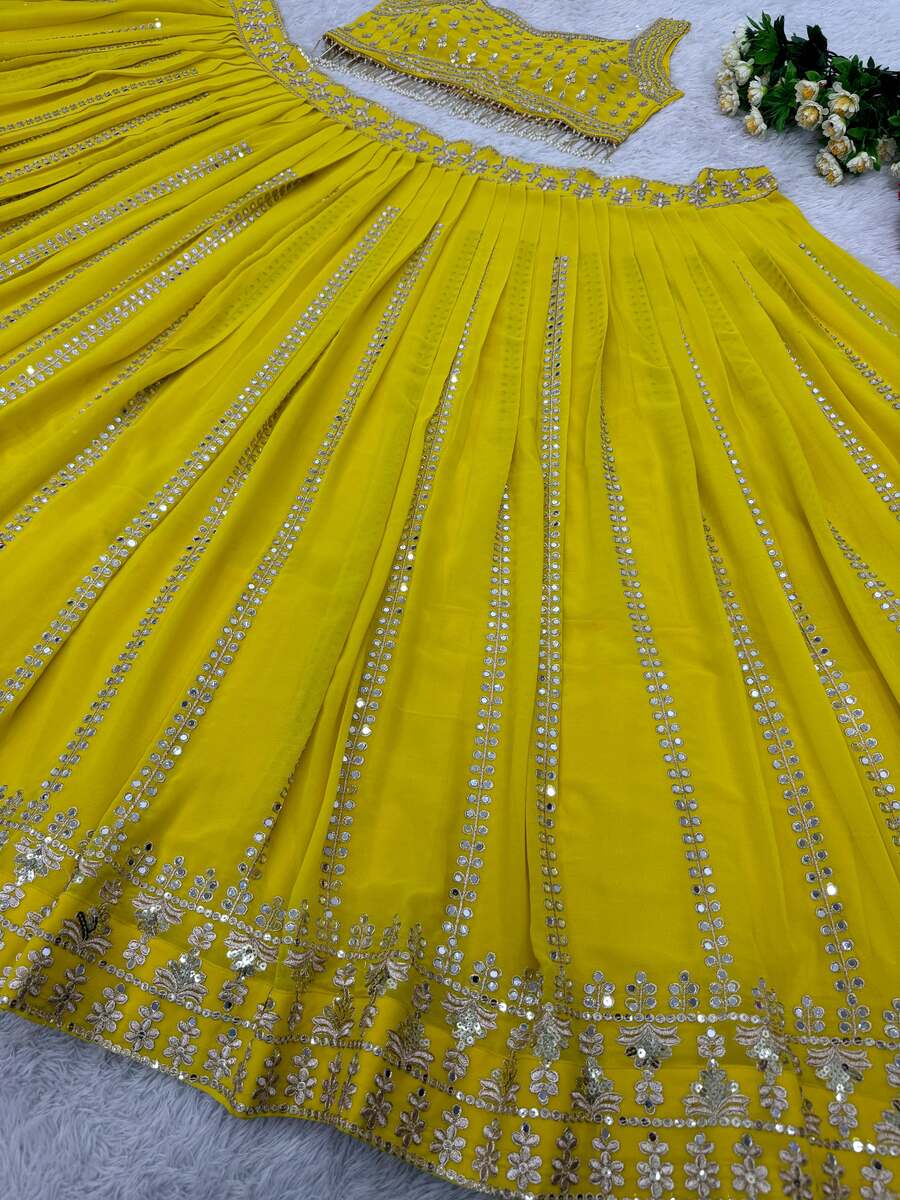 FASHIONABLE GEORGETTE EMBROIDERY SEQUENCE MIRROR WORK LEHENGA CHOLI WITH DUPATTA YELLOW