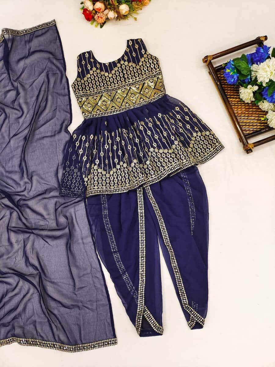 DHOTI : HEAVY FAUX GEORGETTE BEAUTIFUL EMBROIDERY SEQUENCE LACE BORDER DESIGN ON BLOOMING GEORGETTE