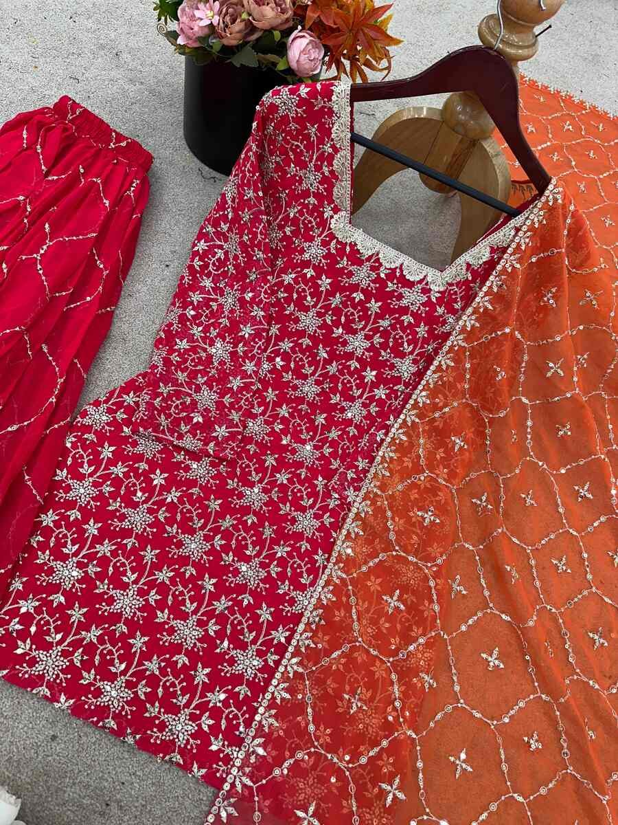 FASHIONABLE GEORGETTE EMBROIDERY SEQUENCE WORK TOP PALAZZO WITH DUPATTA PINK