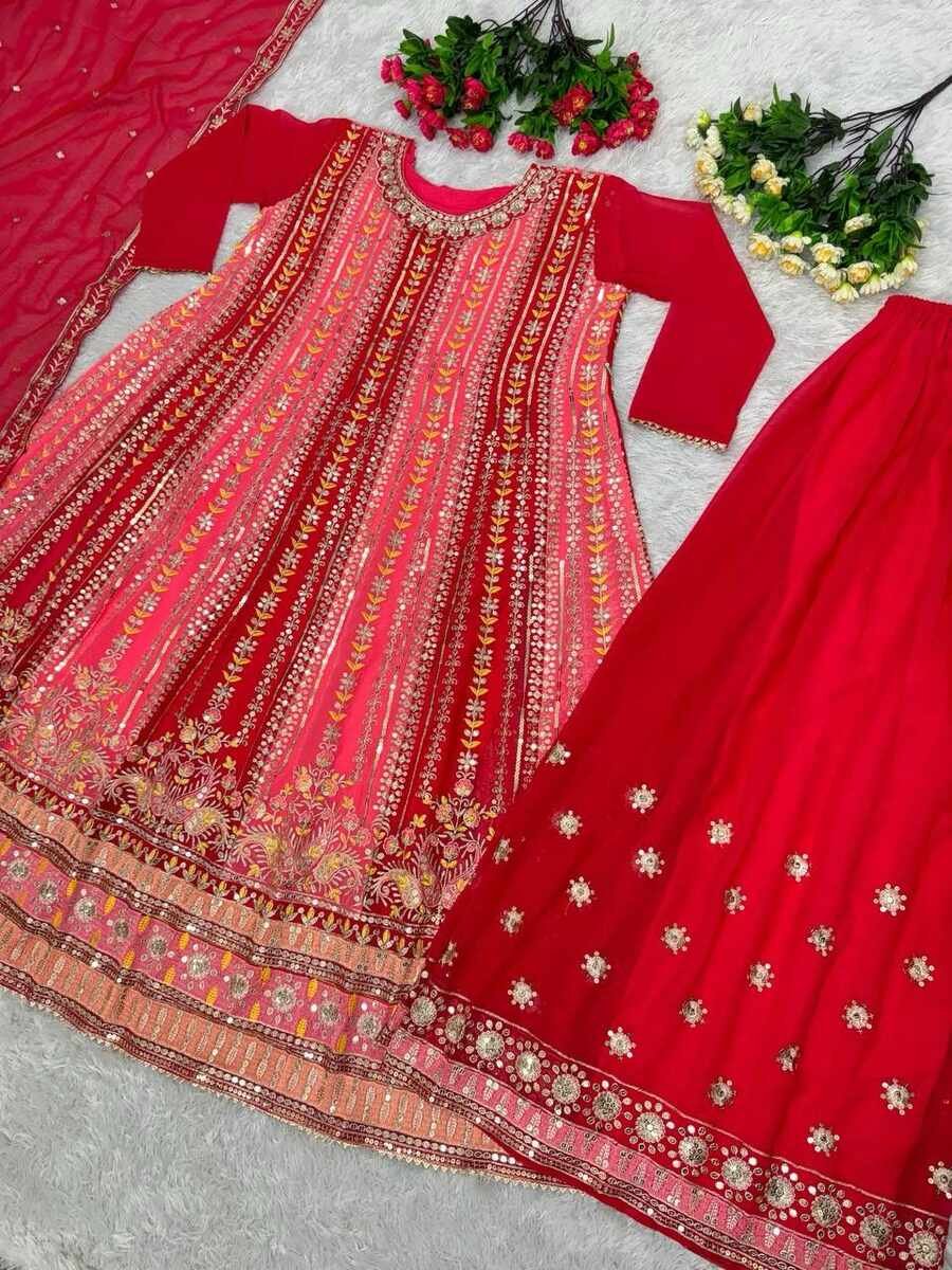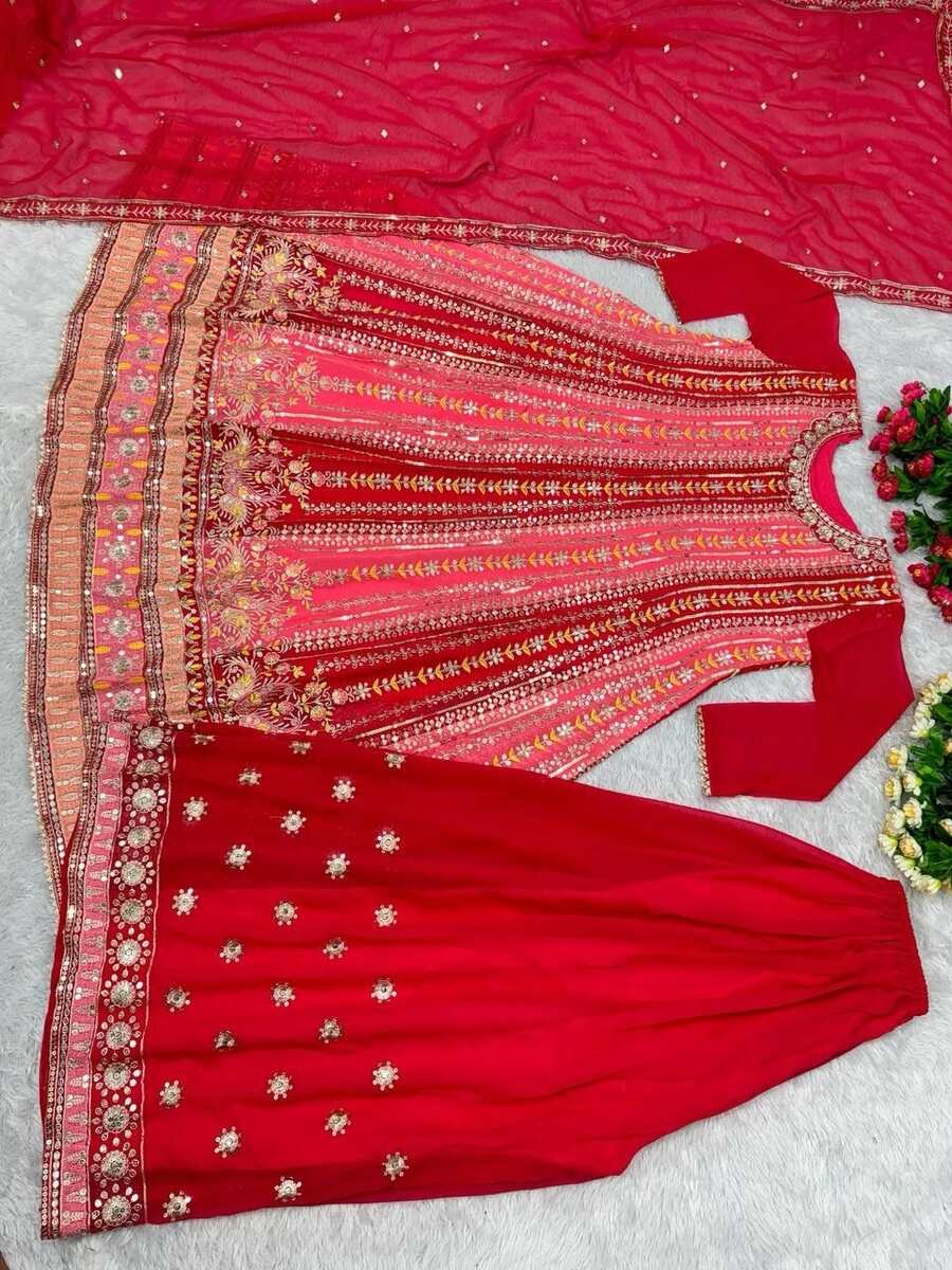 FASHIONABLE GEORGETTE EMBROIDERY SEQUENCE WORK TOP PALAZZO WITH DUPATTA RED
