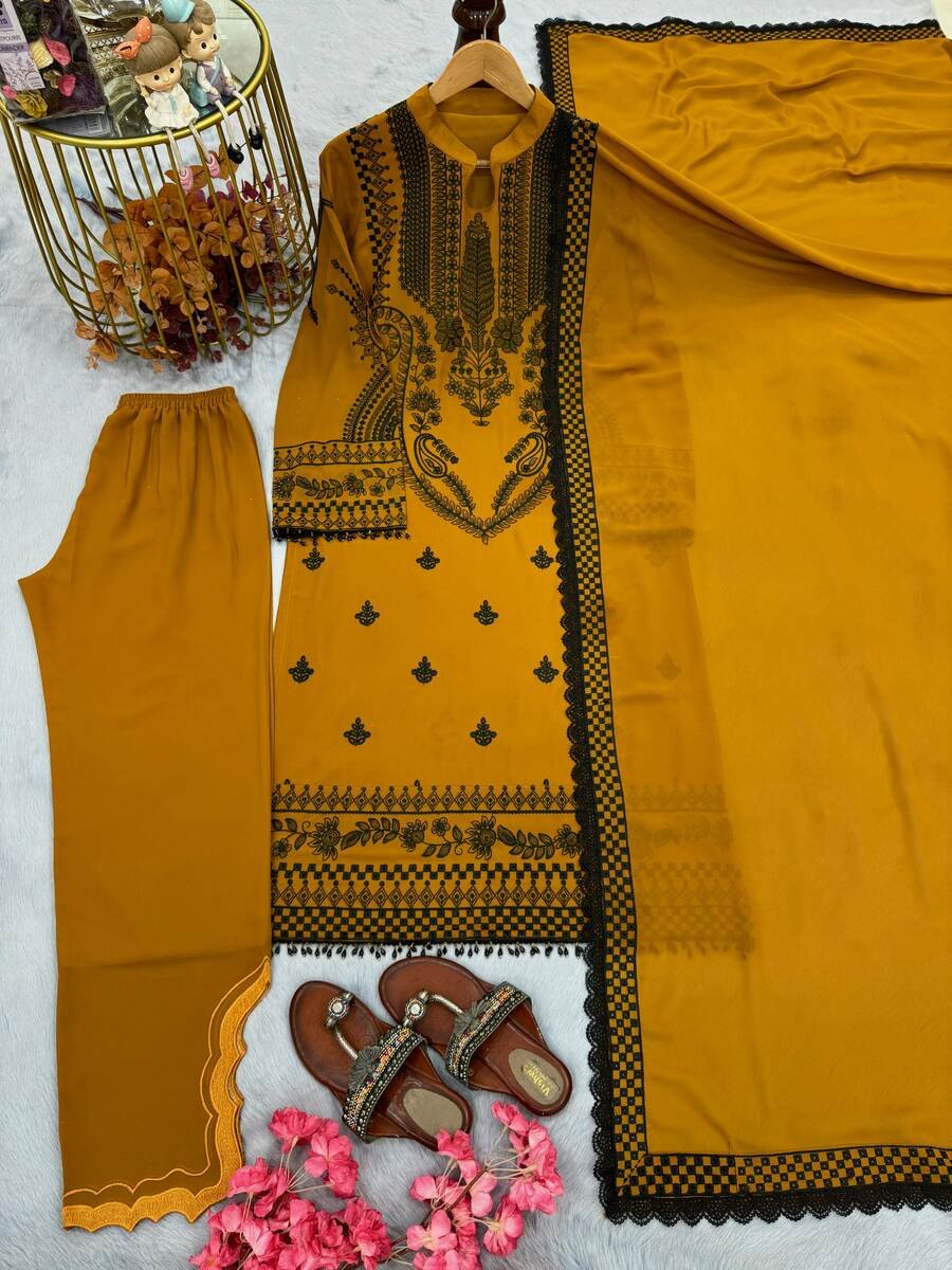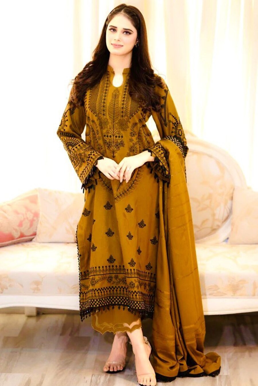 WORK : HEAVY EMBROIDERY WORK WITH SLEEVES WITH FANCY LATKAN BORDER