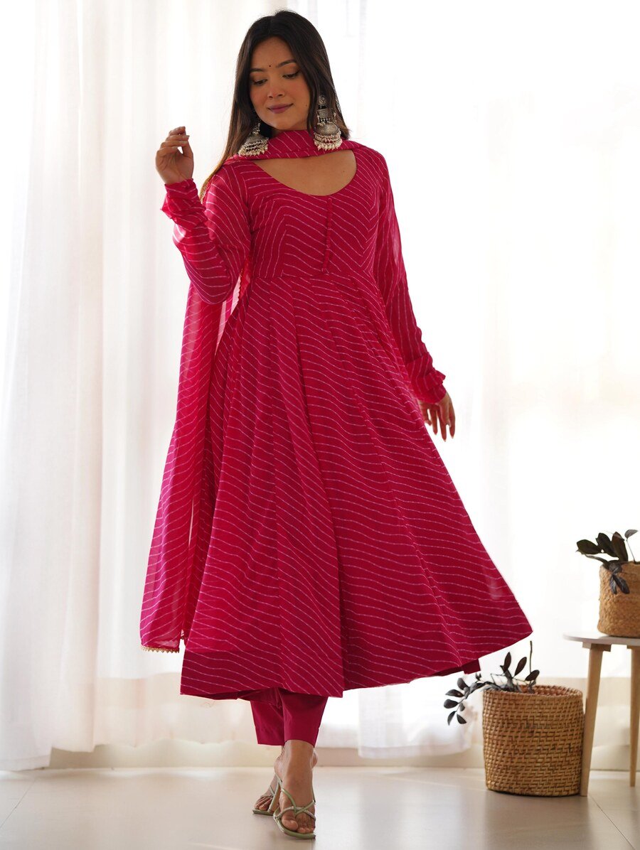 GOWN FABRIC : HEAVY PURE FAUX GEORGETTE LEHERIYA PRINT