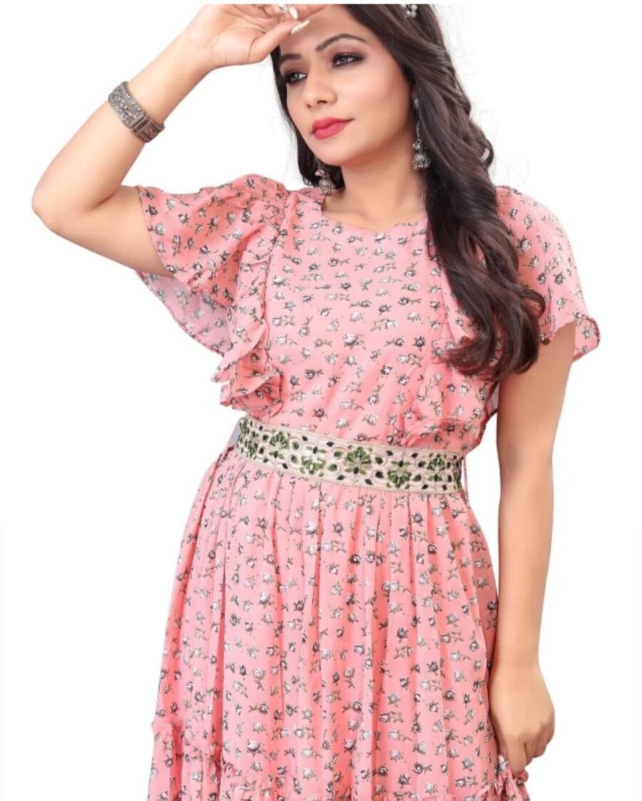 GOWN FABRIC :- HEAVY GEORGETTE PRINTED WITH INNER HEAVY CREPE BELT