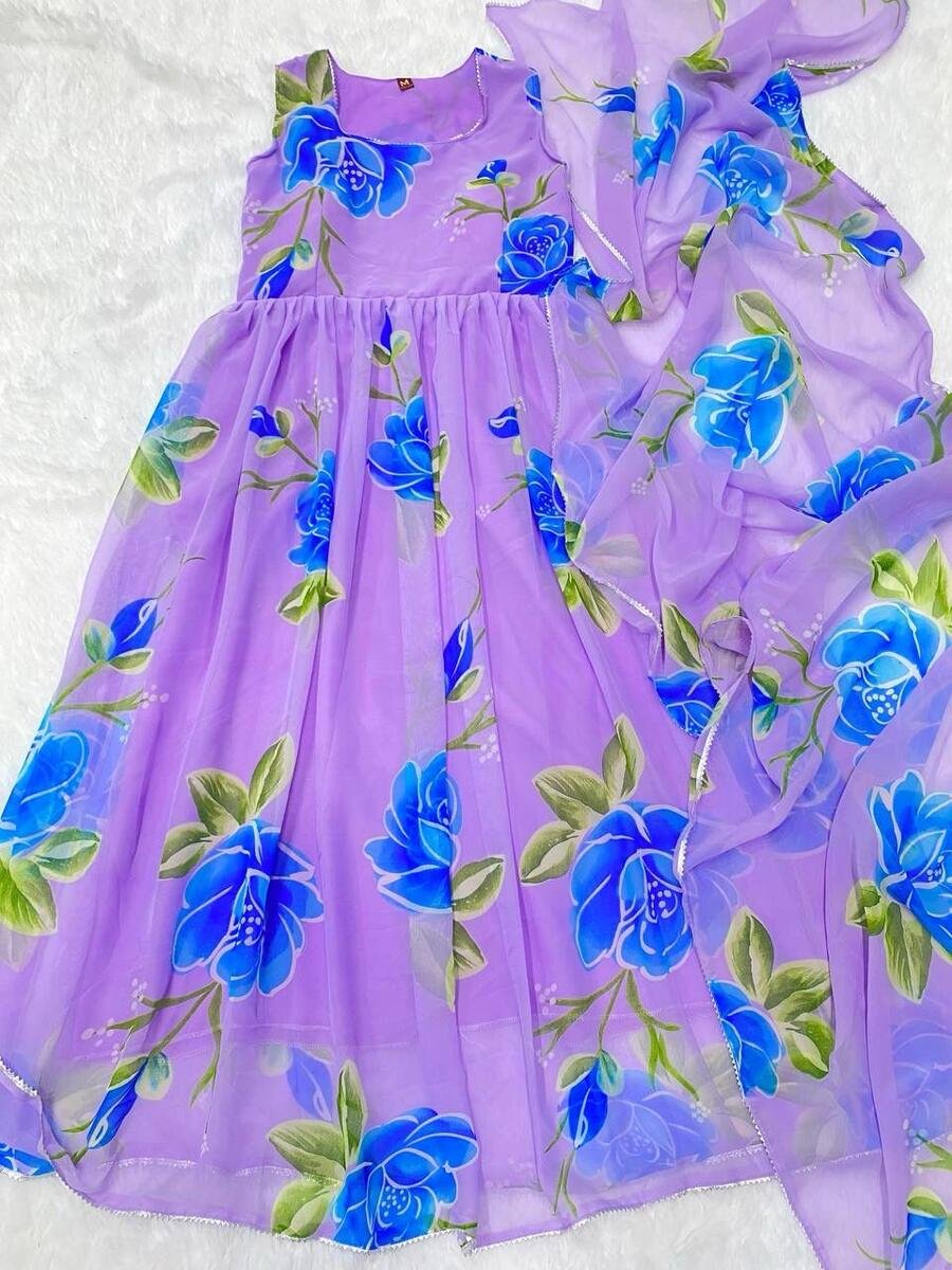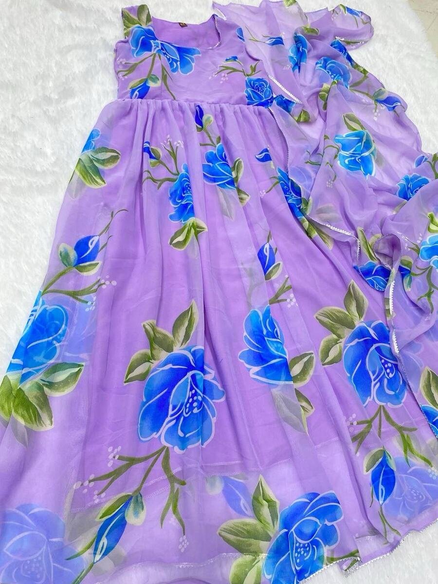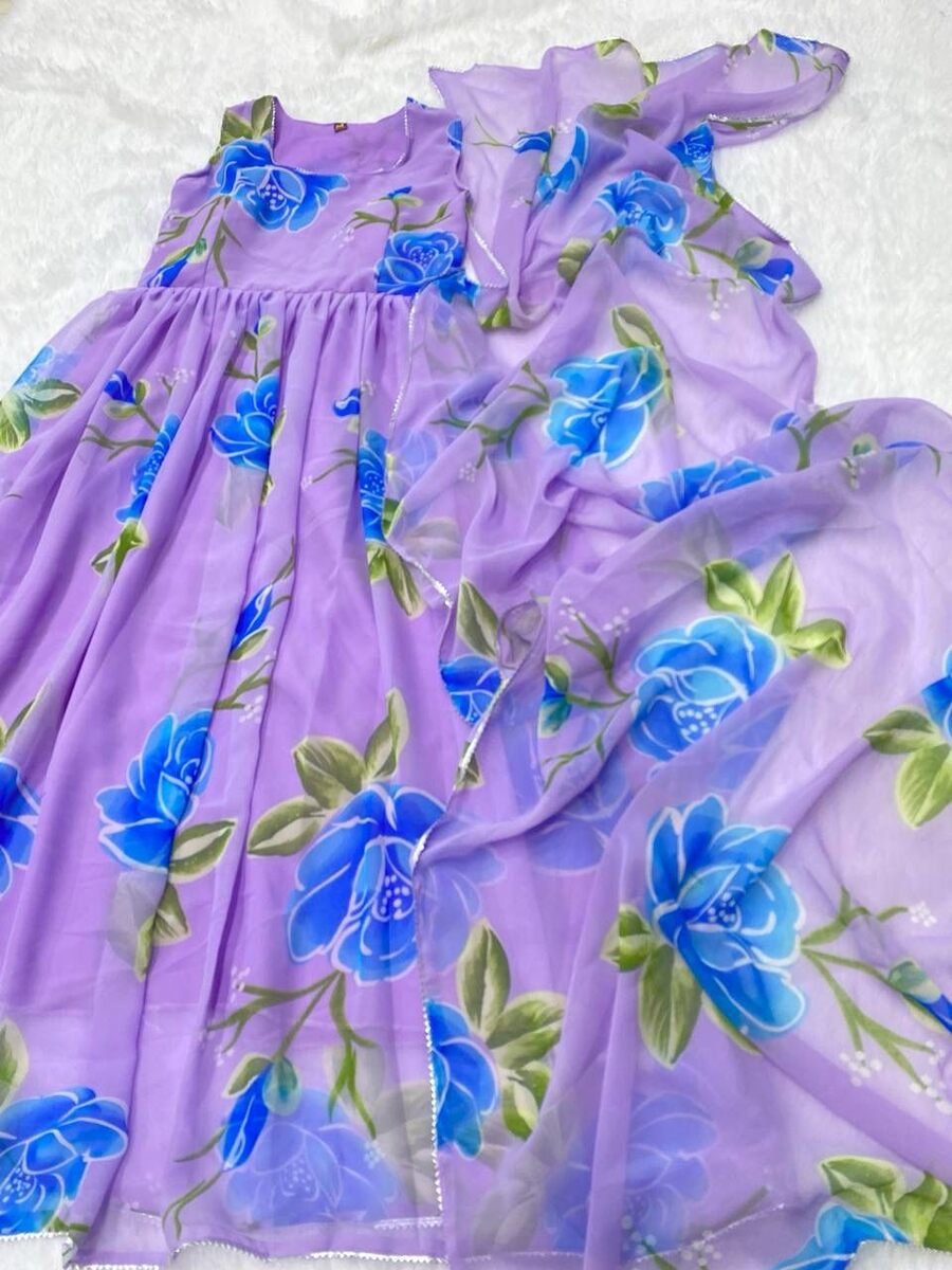 FASHIONABLE GEORGETTE PRINTED GOWN WITH DUPATTA LAVENDER