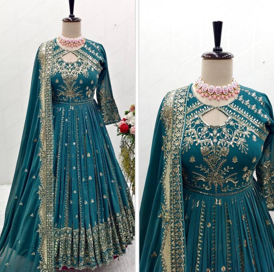 FASHIONABLE GEORGETTE SEQUENCE EMBROIDERY WORK GOWN BOTTOM WITH DUPATTA RAMA