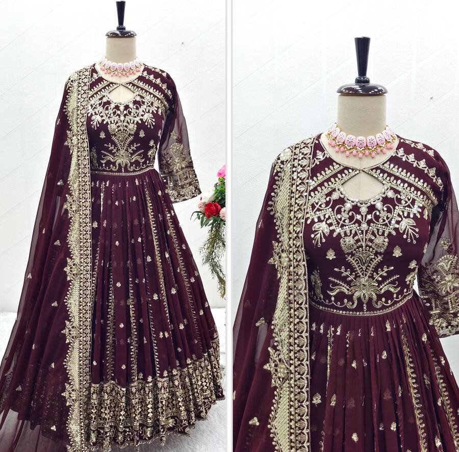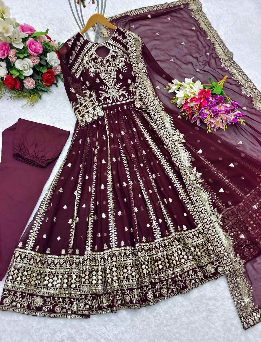 FASHIONABLE GEORGETTE SEQUENCE EMBROIDERY WORK GOWN BOTTOM WITH DUPATTA WINE