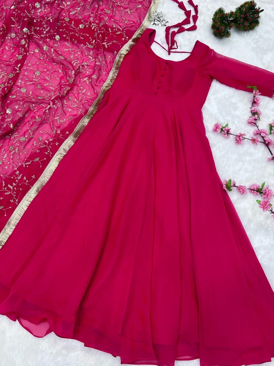 GOWN FABRIC : HEAVY PURE SOFT FAUX GEORGETTE 7 METER PLUS FLAIR