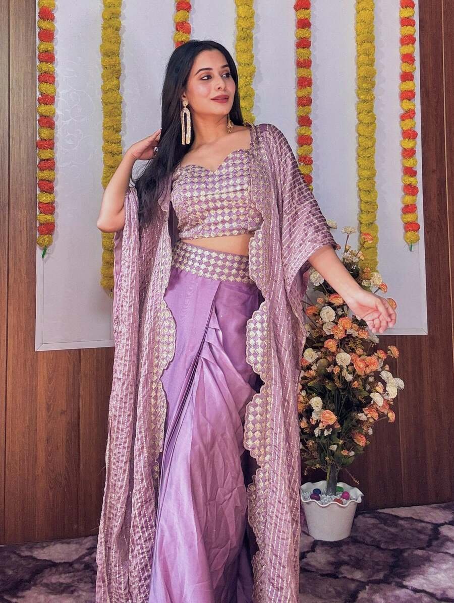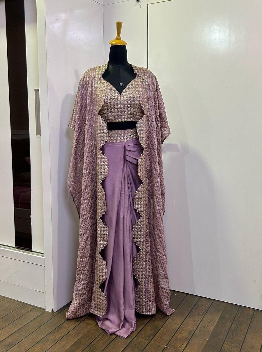 FASHIONABLE KASTURI SILK EMBROIDERY SEQUENCE WORK DRAPE SKIRT BLOUSE WITH DUPATTA PINK