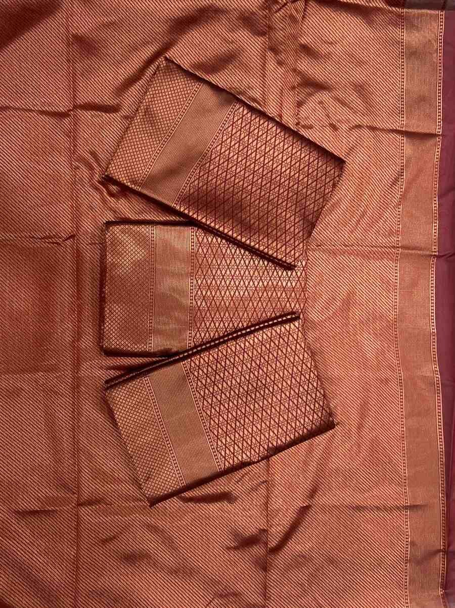 FASHIONABLE LICHI SILK JACQUARD WORK SAREE WITH UNSTITCHED BLOUSE BROWN