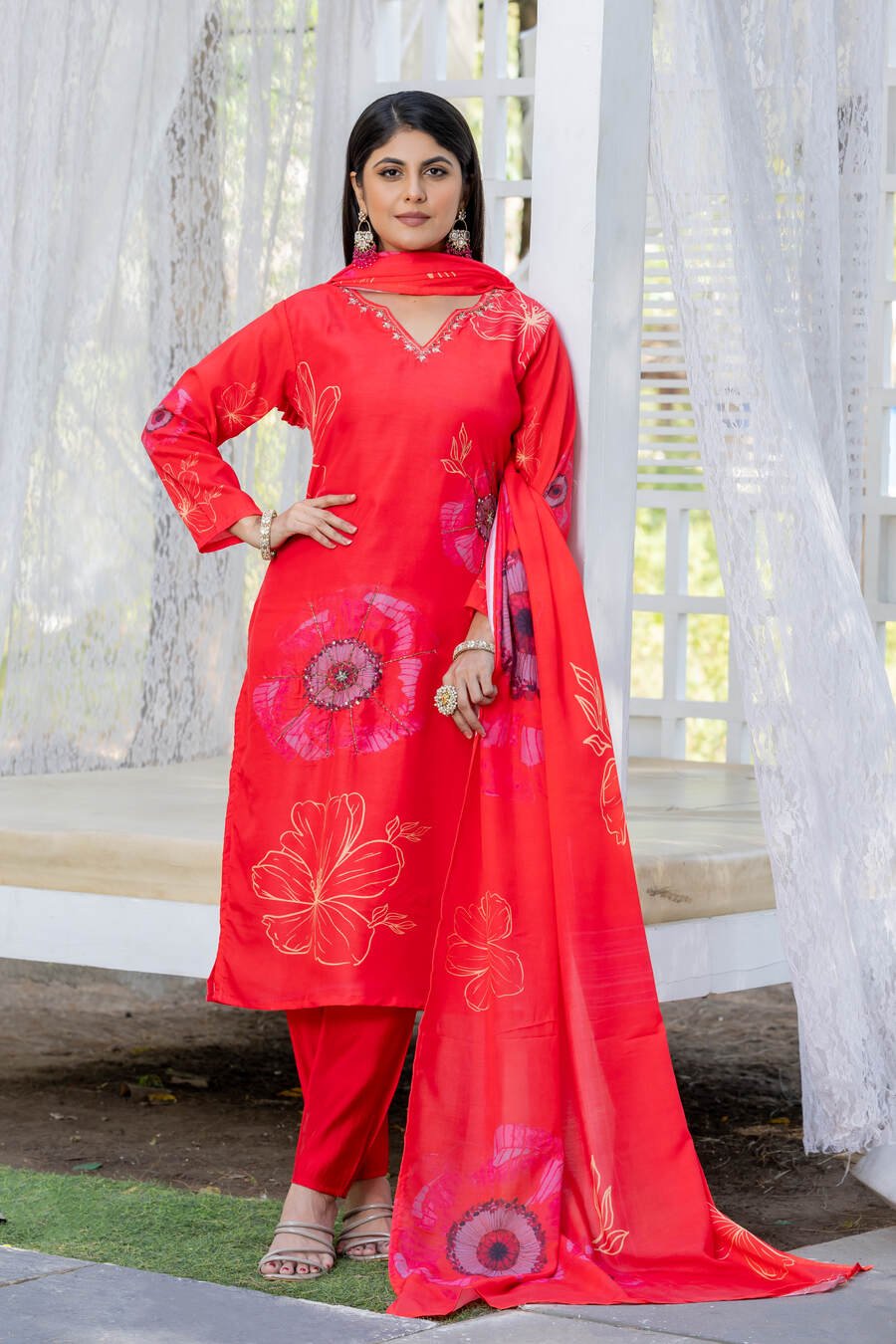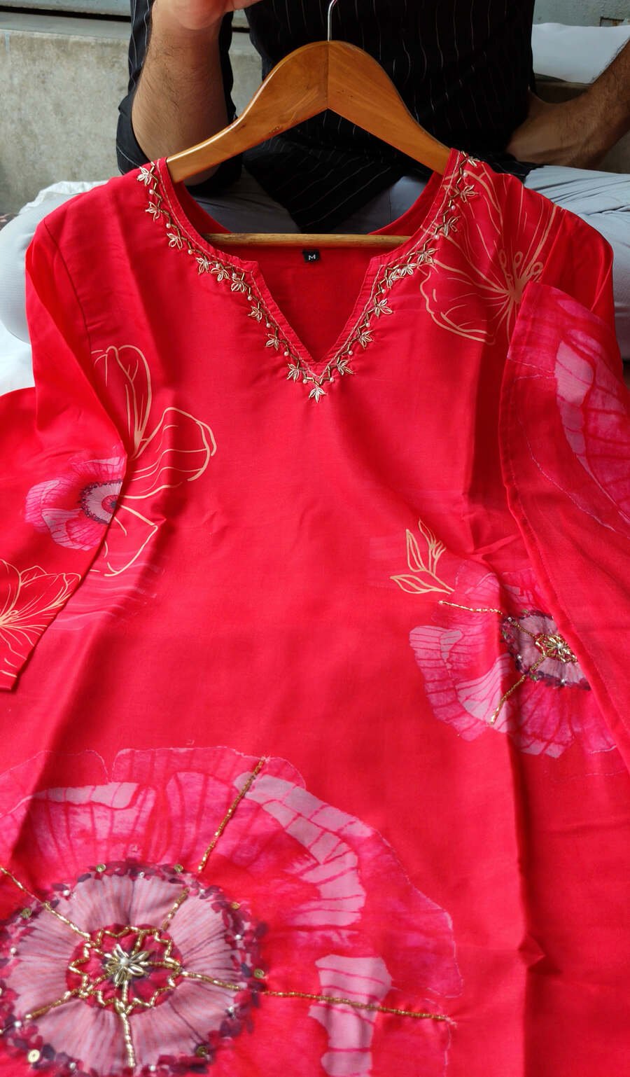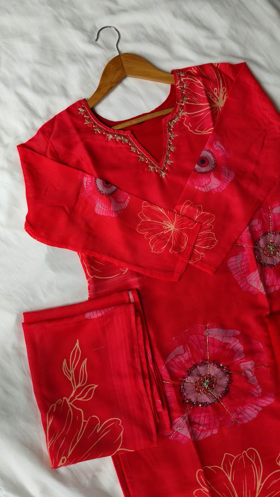 WORK :- FLORAL PRINTED HEAVY HANDWORK