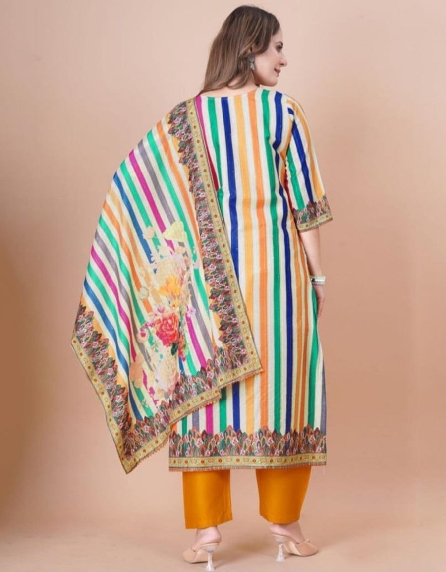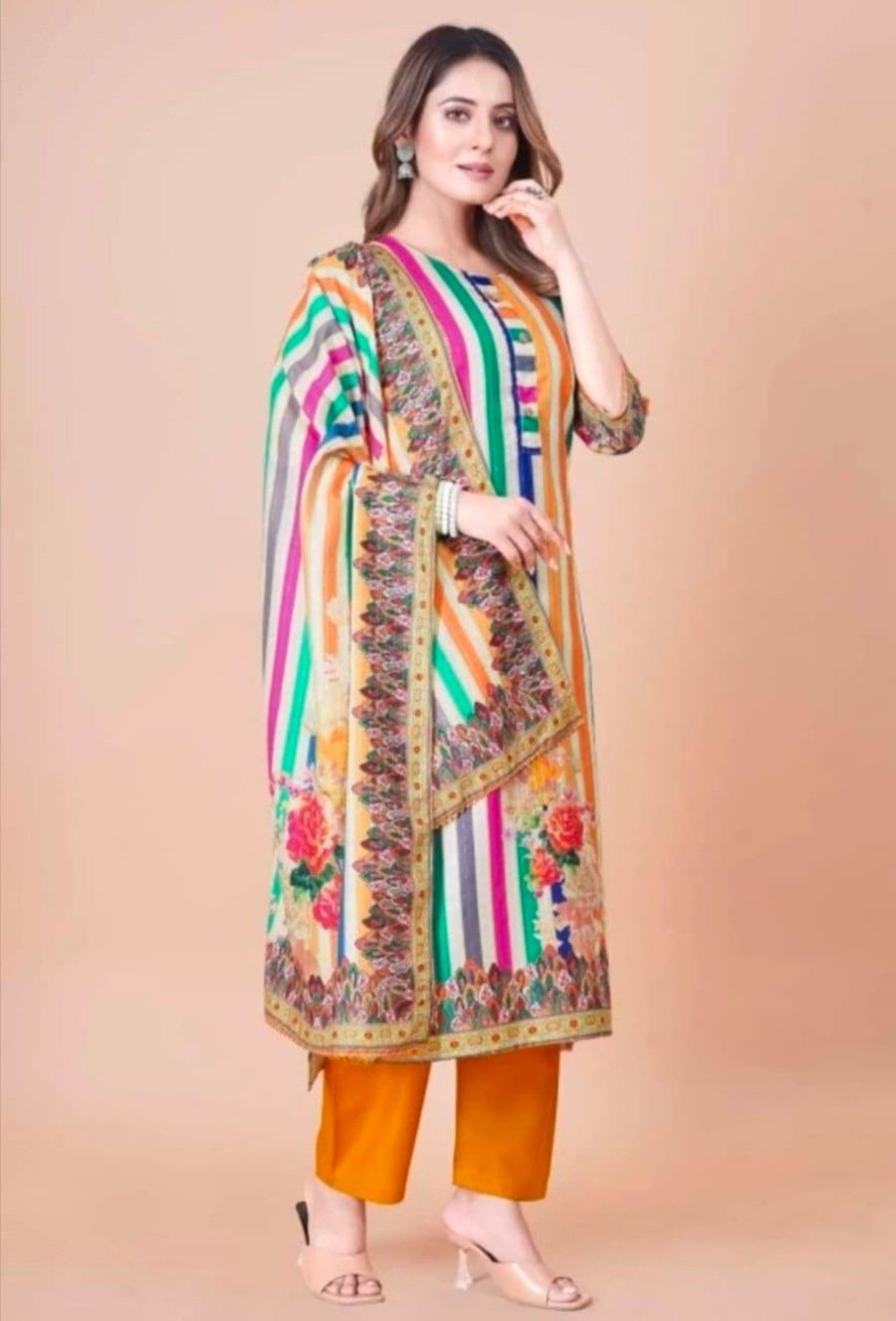 FASHIONABLE MUSLIN PRINT WITH SEQUENCE WORK TOP BOTTOM WITH DUPATTA MULTI