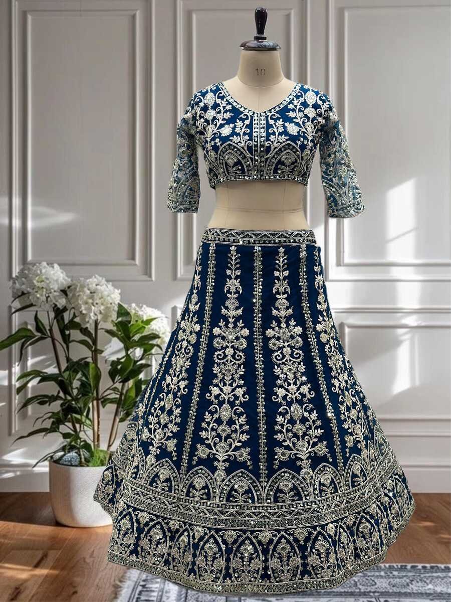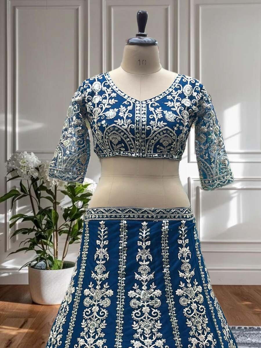 FASHIONABLE NET EMBROIDERY SEQUENCE DESIGN WORK LEHENGA CHOLI WITH DUPATTA RAMA