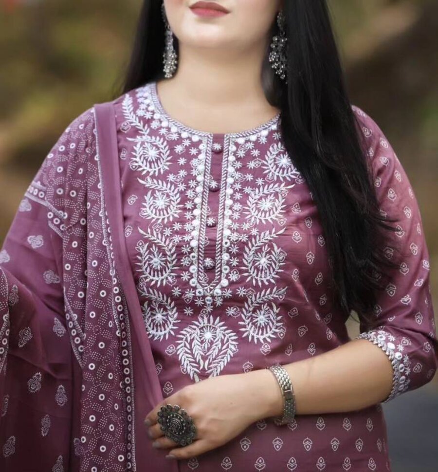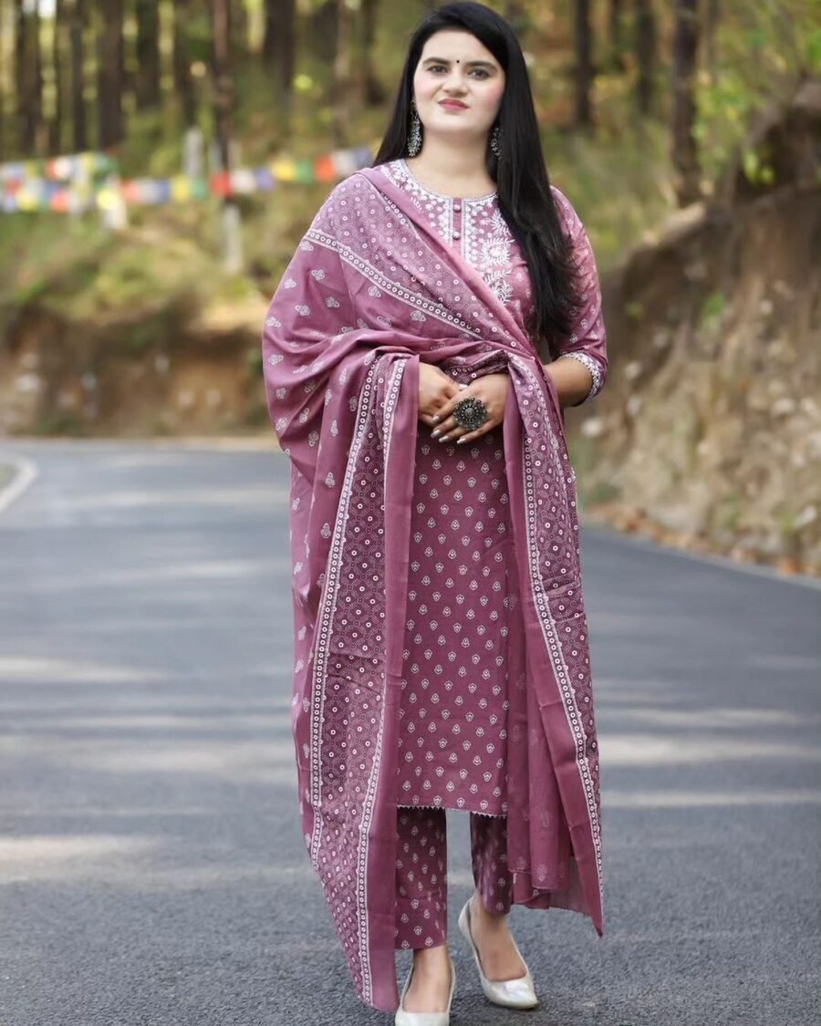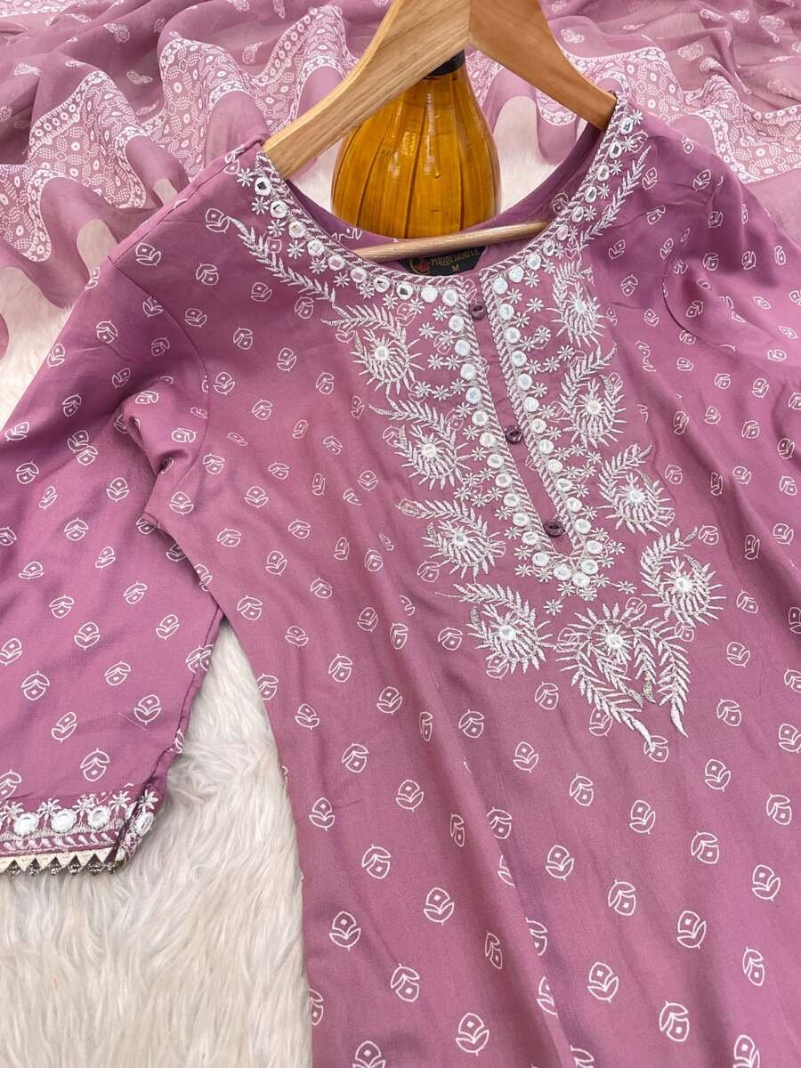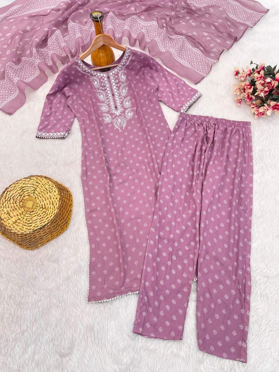 FASHIONABLE RAYON PRINTED EMBROIDERY WORK TOP BOTTOM WITH DUPATTA PINK