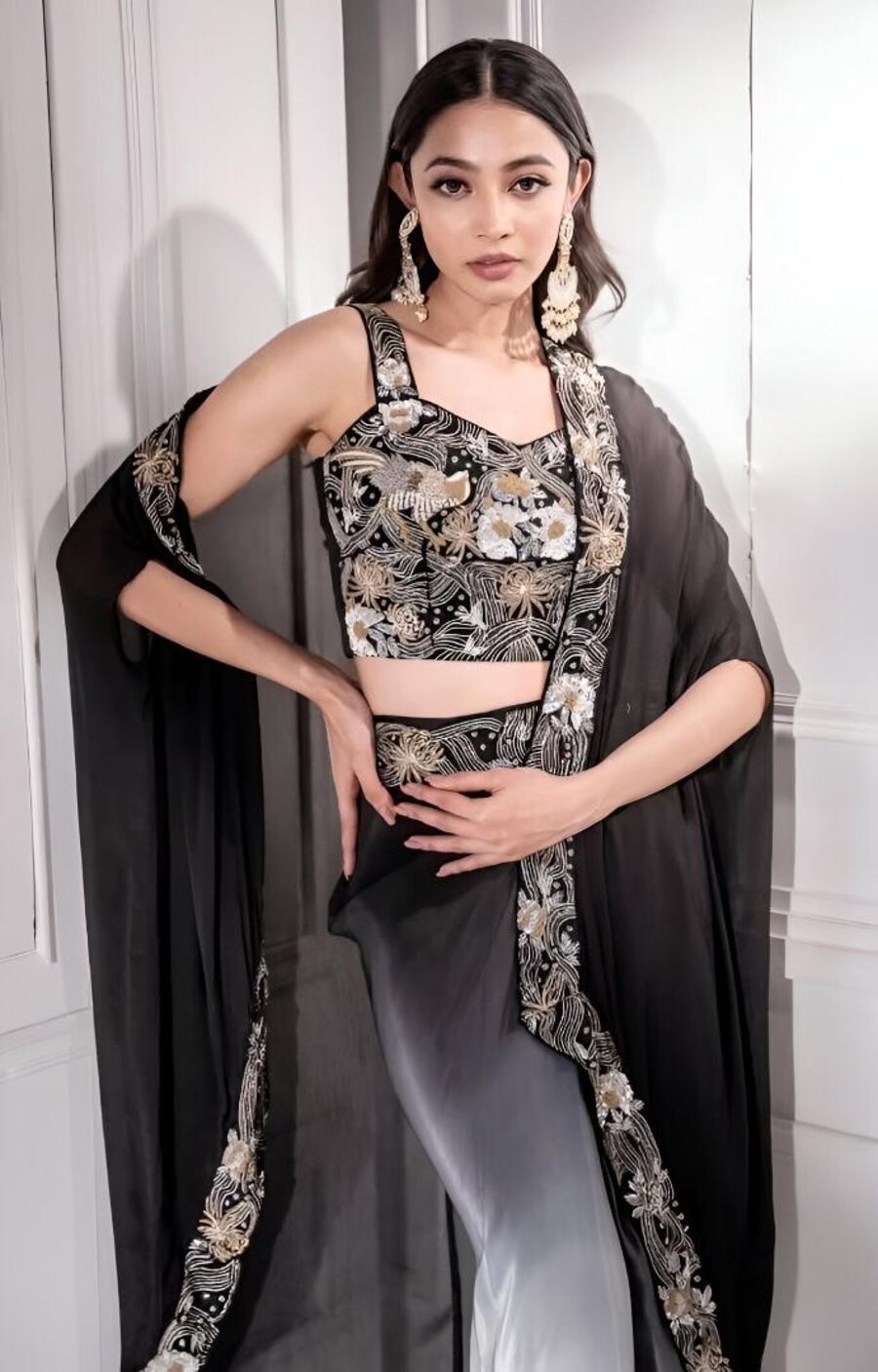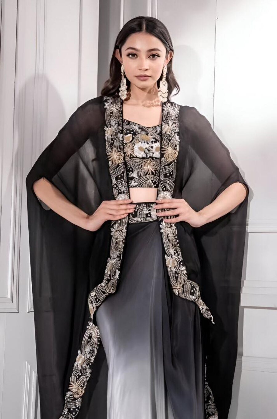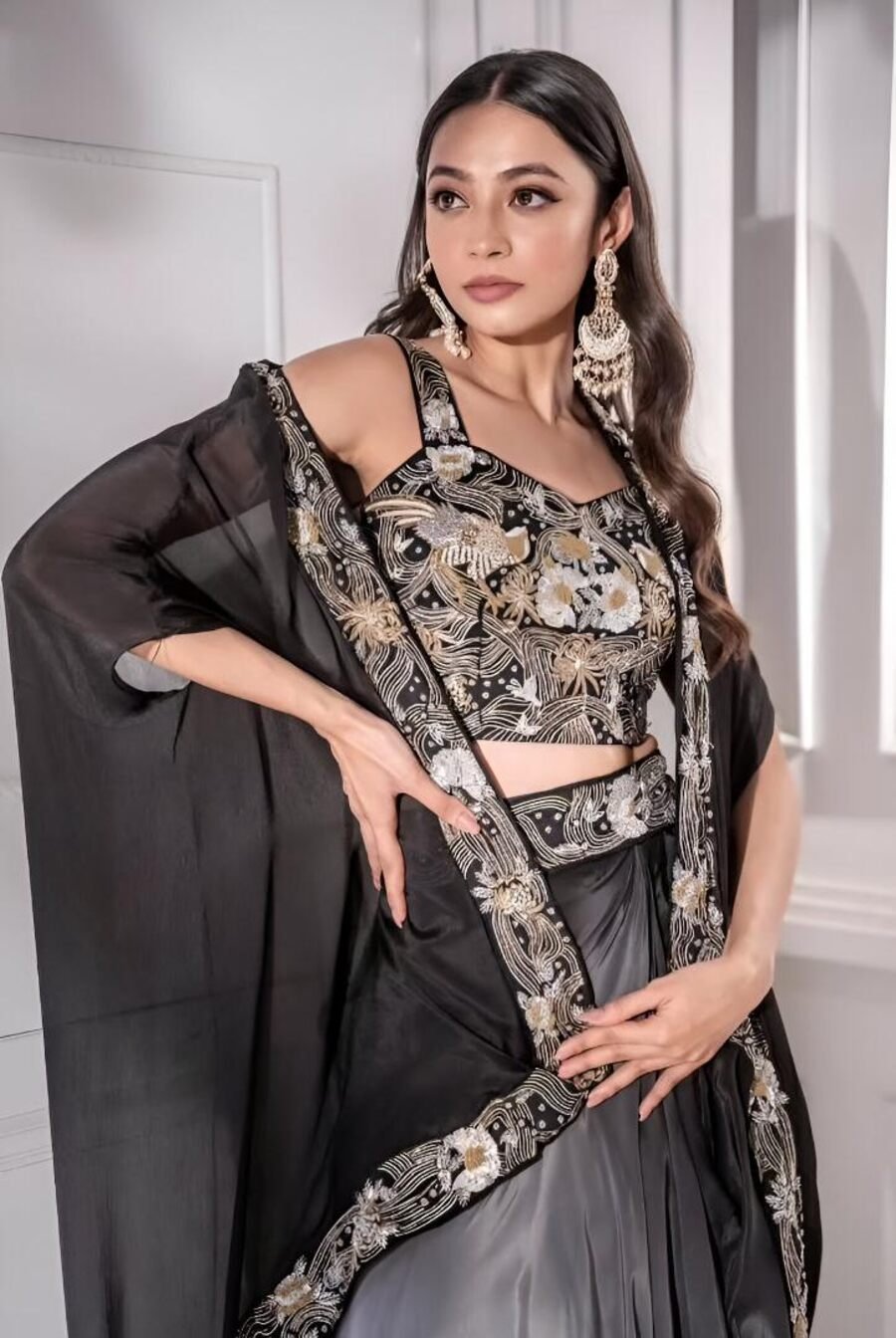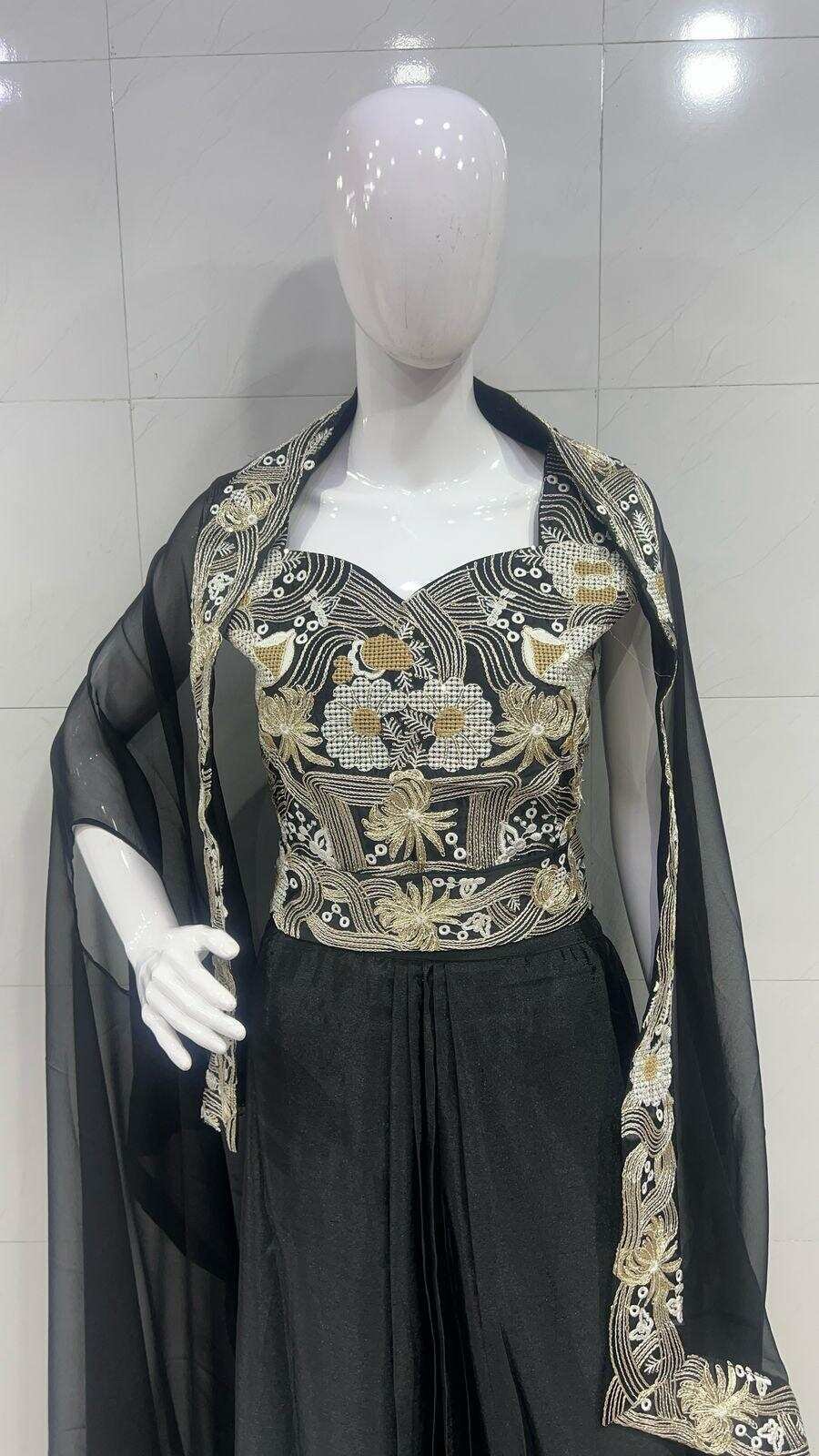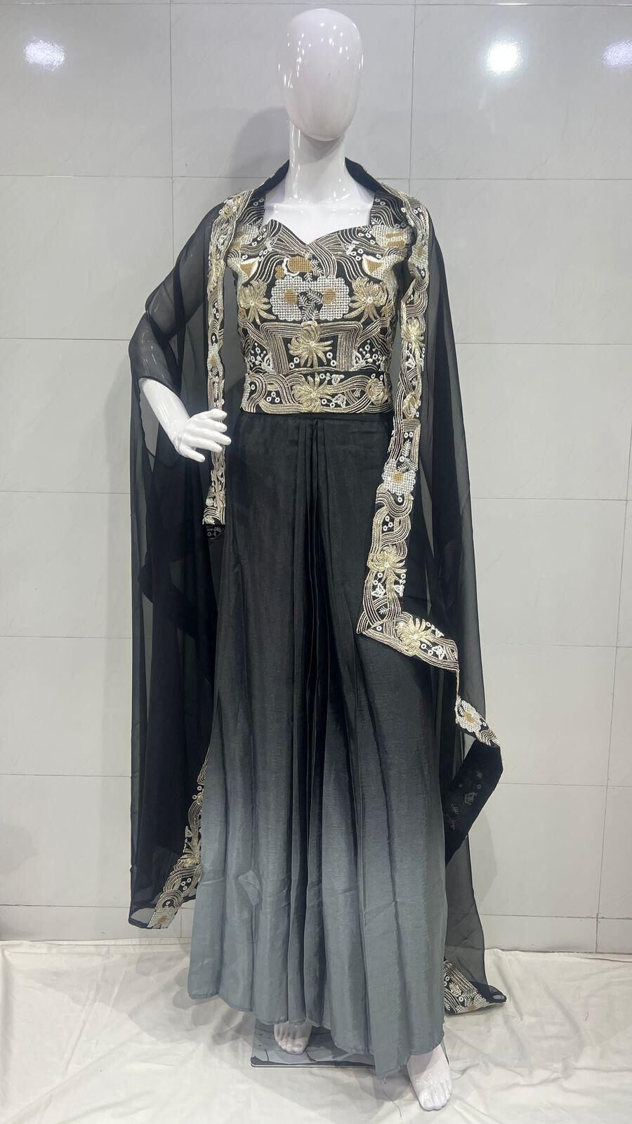 SHRUG & BELT :- HEAVY GEORGETTE FABRIC WITH 4”INCH EMBROIDERY LACE & BELT