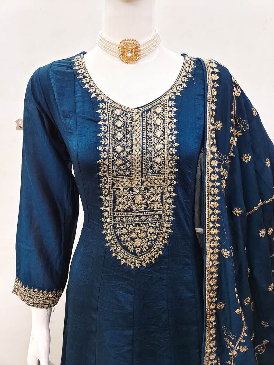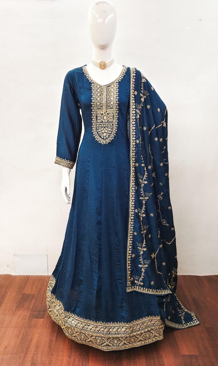 FASHIONABLE SILK EMBROIDERY ZARI SEQUENCE WORK GOWN WITH DUPATTA BLUE