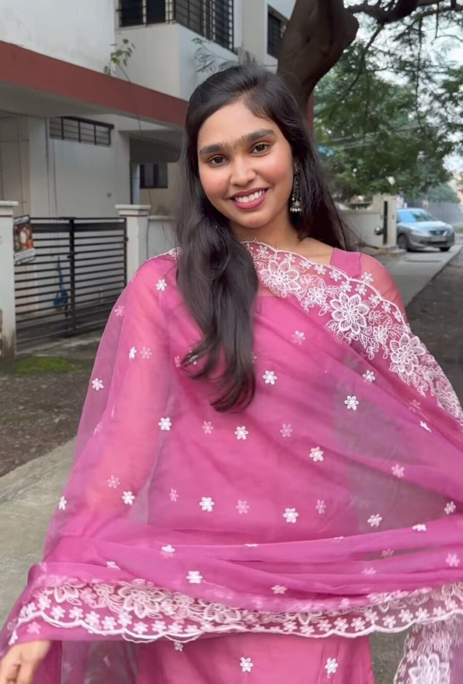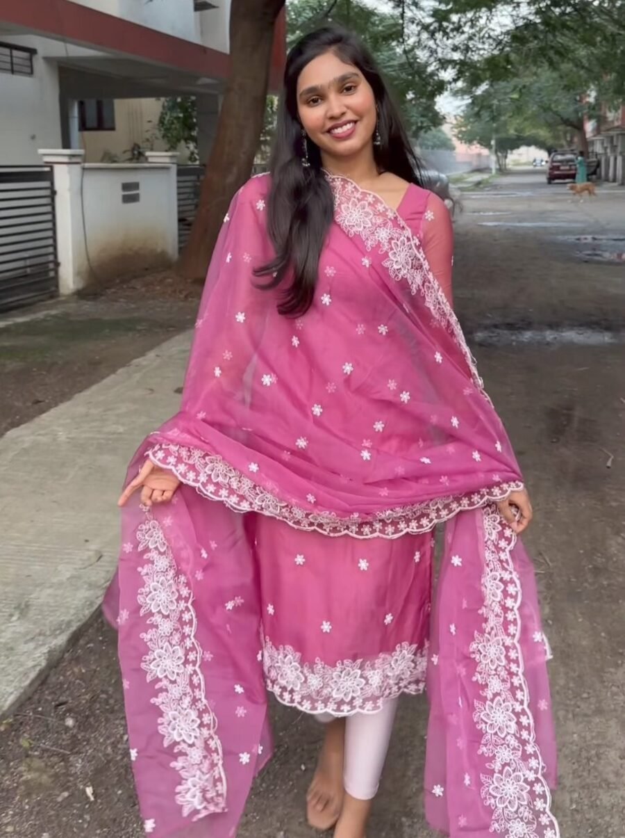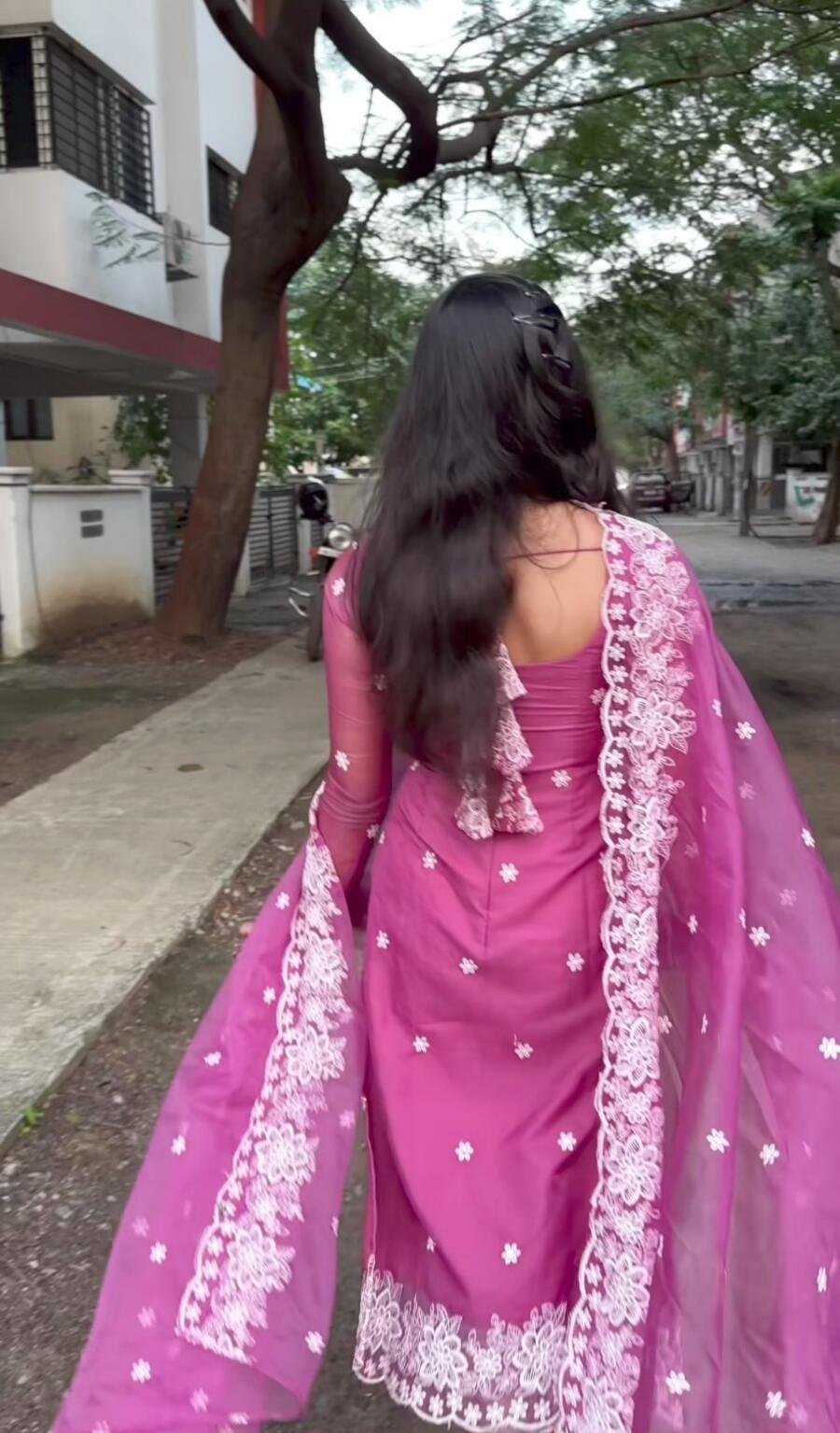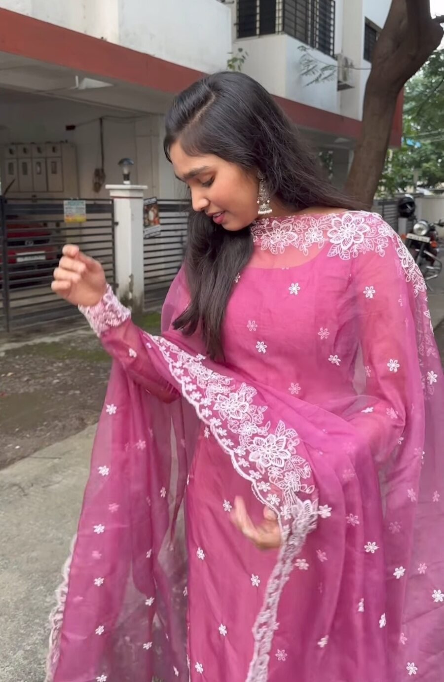 FASHIONABLE TABBY ORGANZA SILK EMBROIDERY WORK TOP WITH DUPATTA PINK