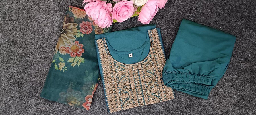 FABRIC:- SILK BLEND BEAUTIFUL EMBROIDERY WORK