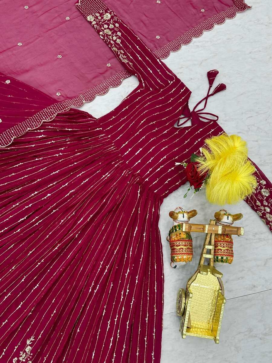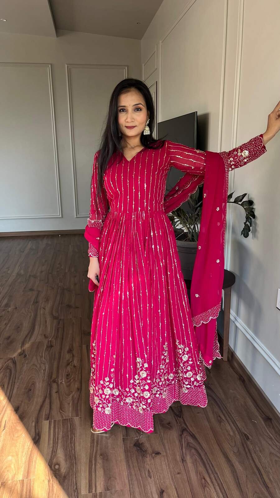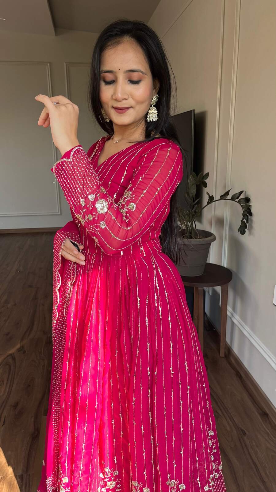 GEORGETTE SEQUENCE EMBROIDERY WORK GOWN WITH DUPATTA PINK