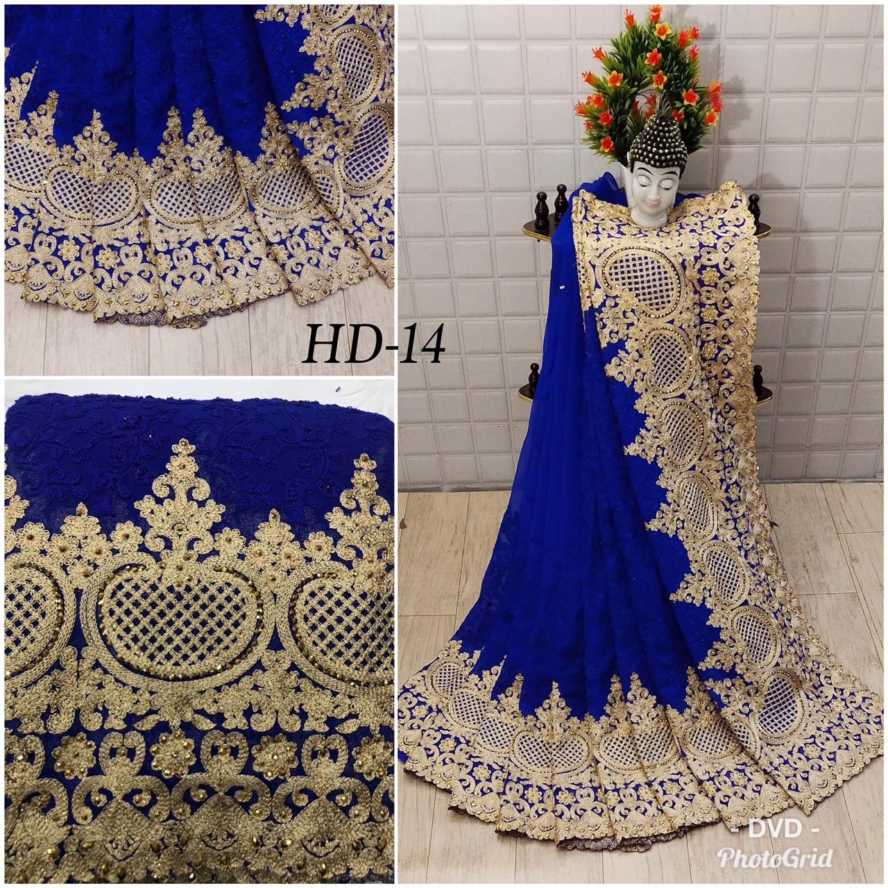 DESIGNER SOFY SILK HEAVY STONE WORK SAREE WITH UNSTITCHED BLOUSE BLUE
