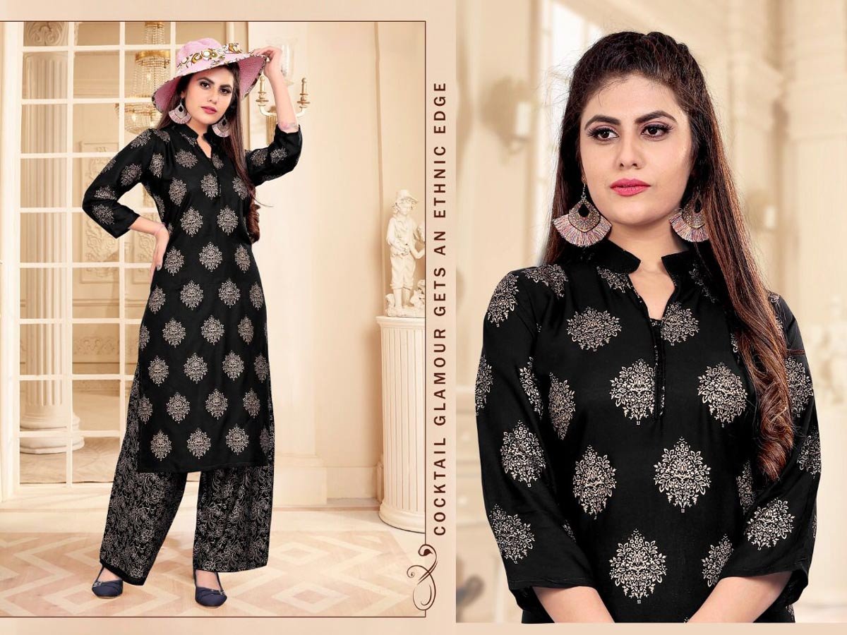 KURTI FABRIC: HEAVY RAYON WITH FOIL GOLD PRINT
