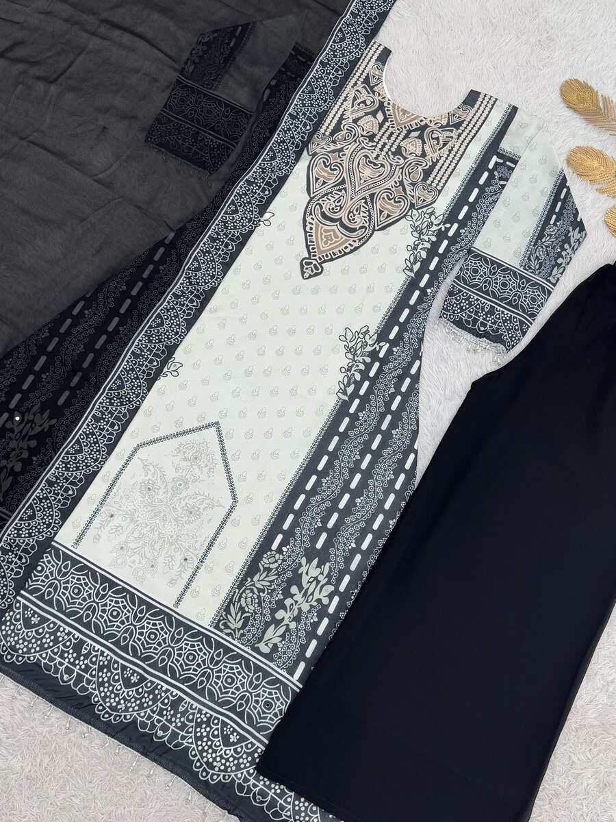 LATEST CHINON SILK DIGITAL PRINT WITH REAL MIRROR HAND WORK TOP PALAZZO WITH DUPATTA WHITE