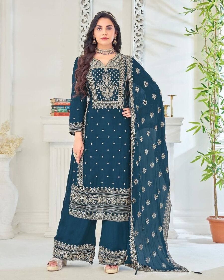 TOP FABRIC : PURE CHINON SILK WITH HEAVY EMBROIDERY SEQUENCE WORK AND FULL SLEEVE
