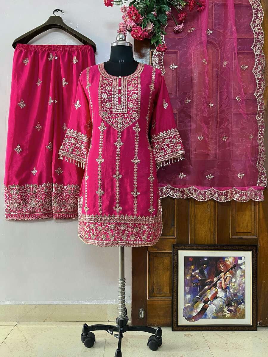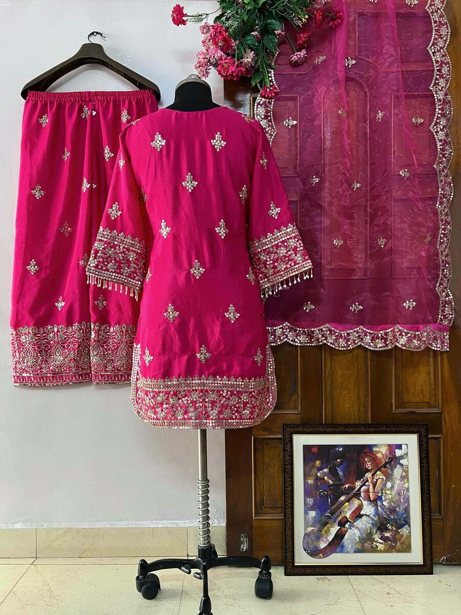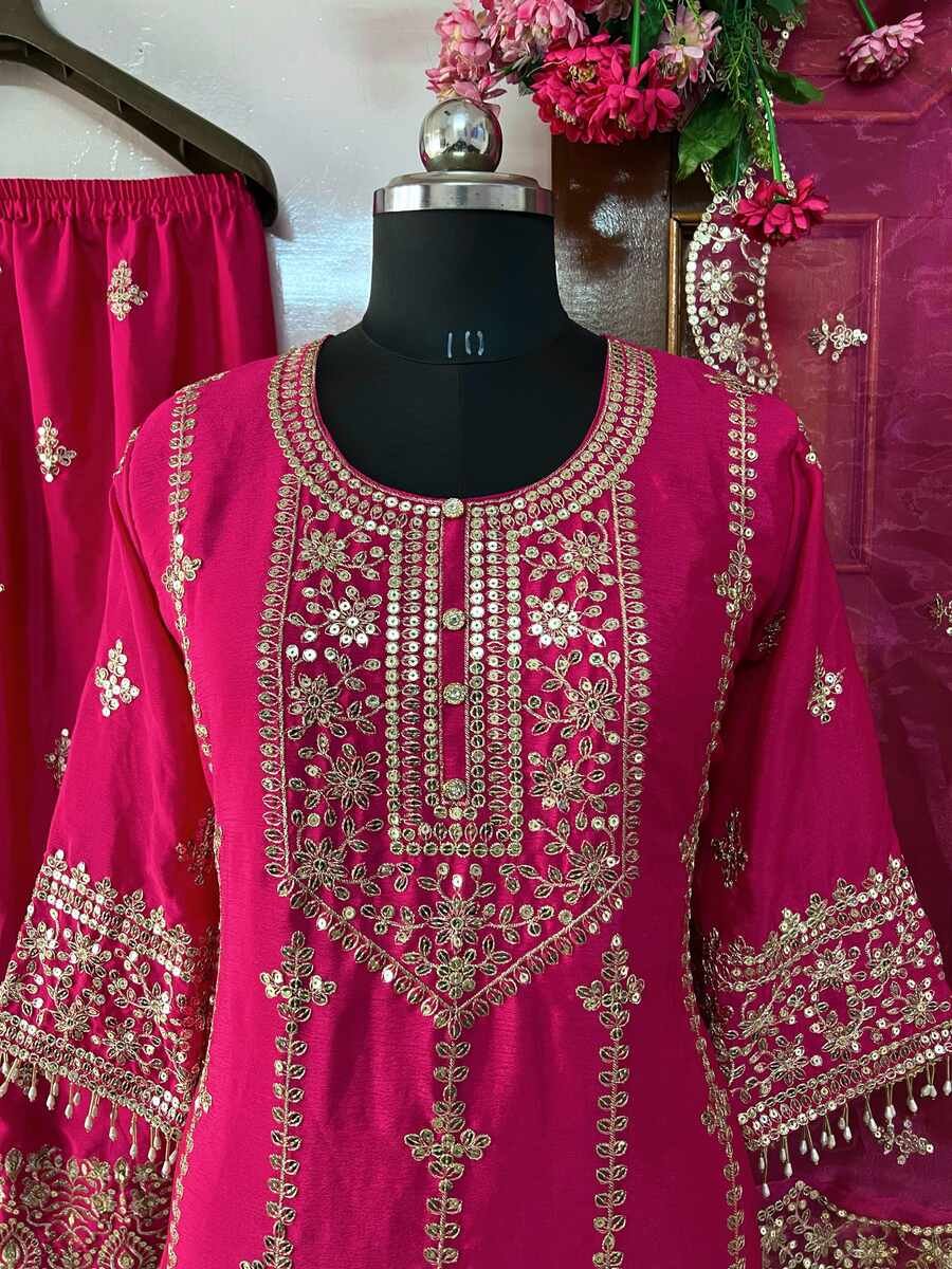 LATEST CHINON SILK SEQUENCE AND ZARI EMBROIDERY WORK WITH FANCY LACE WORK TOP PALAZZO WITH DUPATTA RANI