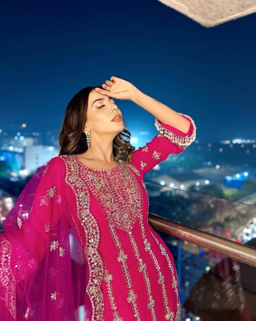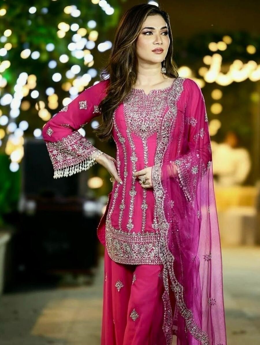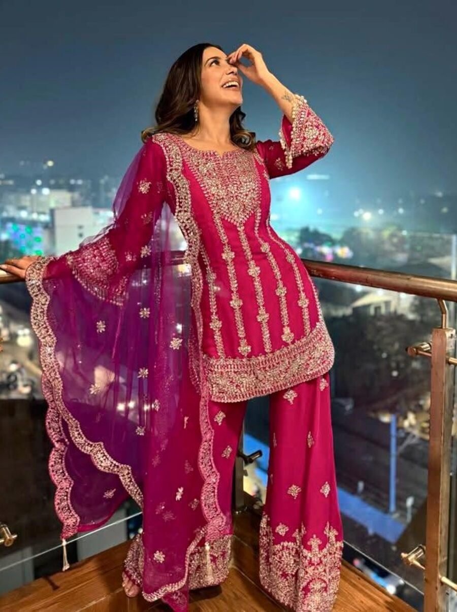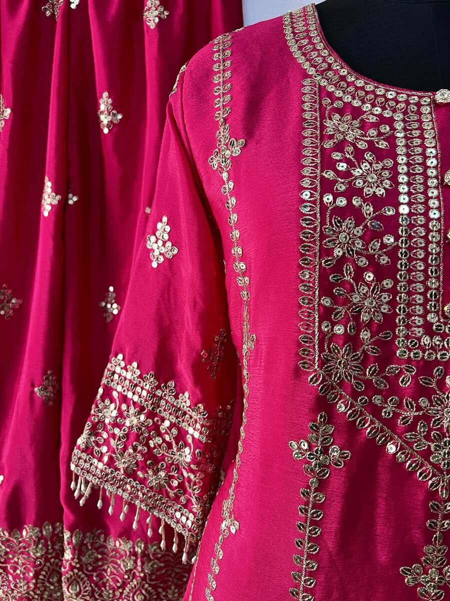 LATEST CHINON SILK SEQUENCE AND ZARI EMBROIDERY WORK WITH FANCY LACE WORK TOP PALAZZO WITH DUPATTA RANI